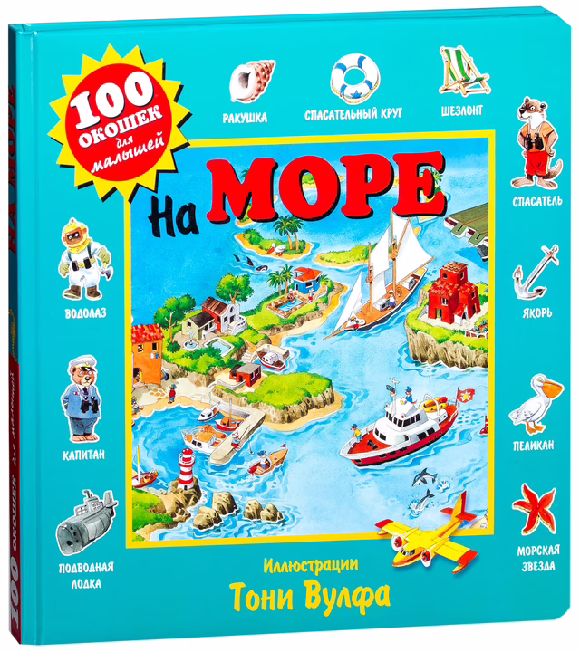 Эта развивающая книга для детей от 3-х лет нарисована всемирно известным итальянским художником Тони Вулфом, который делает наш мир лучше, ярче, добрее. Путешествуя по страницам книги, малыши познакомятся с обитателями морей и океанов и узнают, сколько тайн скрыто на морском дне, как надо вести себя на пляже, кого надо опасаться в воде и много-много других интересных фактов. А открывая каждое из 100 окошек, дети получат массу необходимой для их развития информации, которую они непременно запомнят.