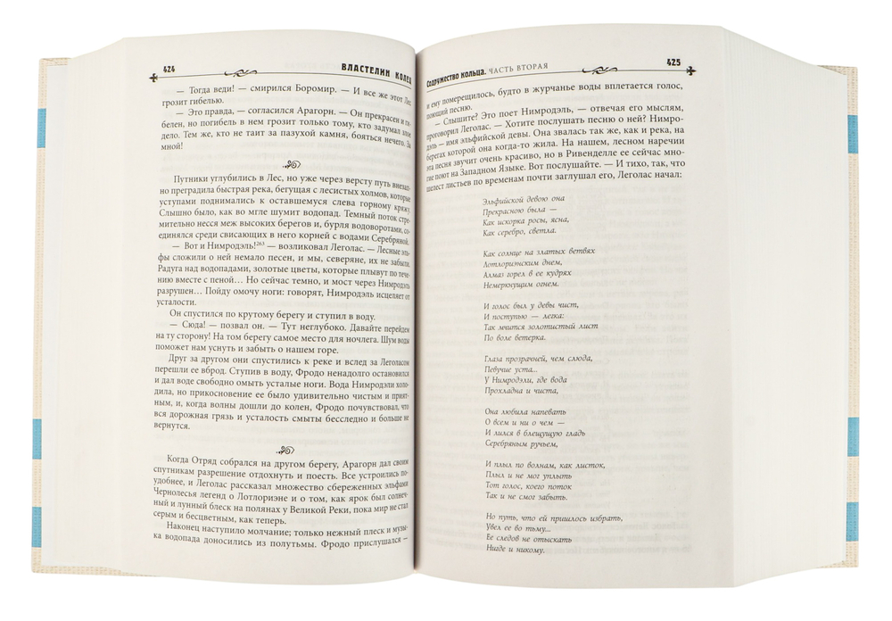 А у меня не получилось разделить восторга от этого перевода вместе со всеми теми, кто написал отзывы выше... Очень, очень люблю Властелина Колец, читала его на английском. Но вот этот перевод отчего-то не зашел. Здесь Толкин слишком серьезен, слишком велеречив и возвышен. Герои глаголют, не разговаривают. Не уверена, что перевод должен быть уж настолько близок к тексту: "Шир" все-таки должен оставаться "Широм", а не переведенным "Засельем". Да, я читала в комментариях, что в преклонном возрасте сам Толкин уже был согласен с тем, что, мол, переводите как хотите, но вначале-то он сам был крайне категоричен в этом вопросе: "книга написана англичанином, в ней должны оставаться английские топонимы!". А песенки Тома Бомбадила - это же именно песенки, не речитатив, должна оставаться рифма!.. До сих пор помню некоторые строчки из этих стихов, прочитанные в 12 лет - а это огого сколько лет назад :) А здесь их нет... Основная моя претензия к этому переводу - книга получилась слишком серьезной; почему-то исчез теплый английский юмор, что всегда привлекал меня в Толкине. Ну и совет всем тем, кто готовится открыть книгу в этом издании - не читайте комментарии по ходу текста! Да, в предисловии так и написано - сам автор рекомендовал приступать к ним только после того, как перевернется последняя страница романа, иначе впечатление от прочитанного будет смазанным. У меня так и получилось :( Казалось бы, содержание известно прекрасно, почему бы по ходу дела не узнать чуть больше, о подоплеке тех или иных событий... Но нет, не стоит так делать! При таком образе чтения читателя уносит слишком в разные стороны: то отрывки из Сильмариона, то письма к Толкину по поводу христианской доктрины... Приключения героев размываются, они отходят на второй план.