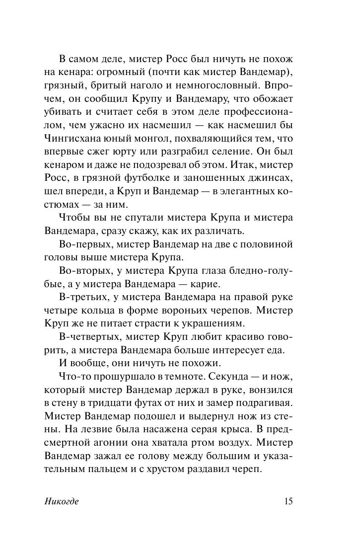 Под Лондоном скрывается место, о котором большинство людей даже не подозревает. Город монстров, святых, убийц и ангелов, рыцарей в сияющих доспехах и бледных девушек в черном бархате. Город тех, кто провалился сквозь трещины жизни. Молодой человек по имени Ричард, совершив акт доброты, оказывается в знакомом и в то же время странном мире под названием Никогде.