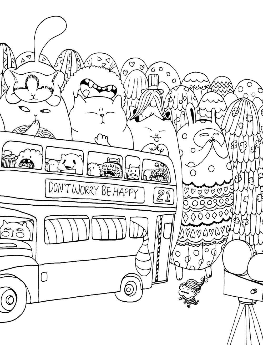 Юмористические иллюстрации со множеством интригующих деталей не оставят равнодушными всех поклонников раскрасок.