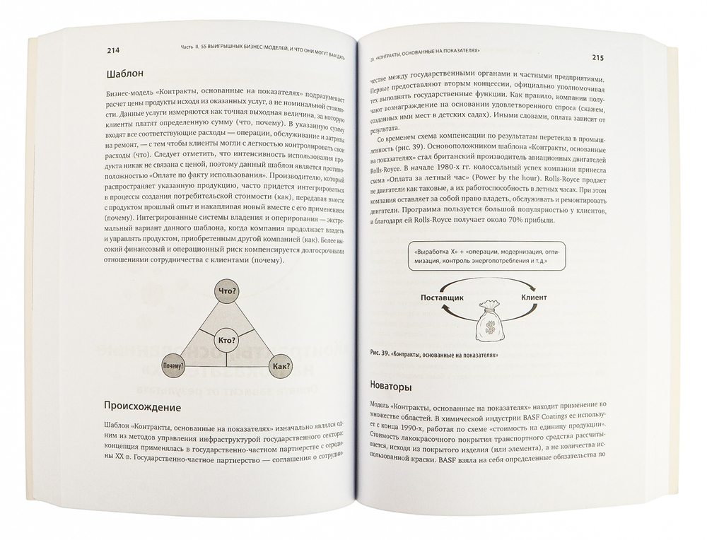 Центральная часть книги – это 55 шаблонов бизнес-моделей, которые в различных комбинациях лежат в основе ведения бизнеса наиболее успешными современными компаниями. Вы найдете подробное описание шаблонов, историю их развития и советы о том, в каких случаях стоит взять на вооружение именно этот шаблон.