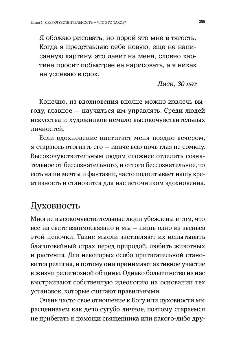 Высокочувствительные люди, или "новые интроверты", – так называют тех, кто острее других реагируют на шум или суету, быстро устают от общества и любят уединение. Эти люди тонко чувствуют мир и обращают внимание на мельчайшие детали, поэтому из них нередко получаются прекрасные поэты, художники и писатели. Однако жить среди других им тяжело: слишком часто приходится оправдываться за свою усталость и нелюдимость, слишком ранит критика, слишком много сил уходит на сопереживание, а также на то, чтобы соответствовать принятым в обществе стандартам.