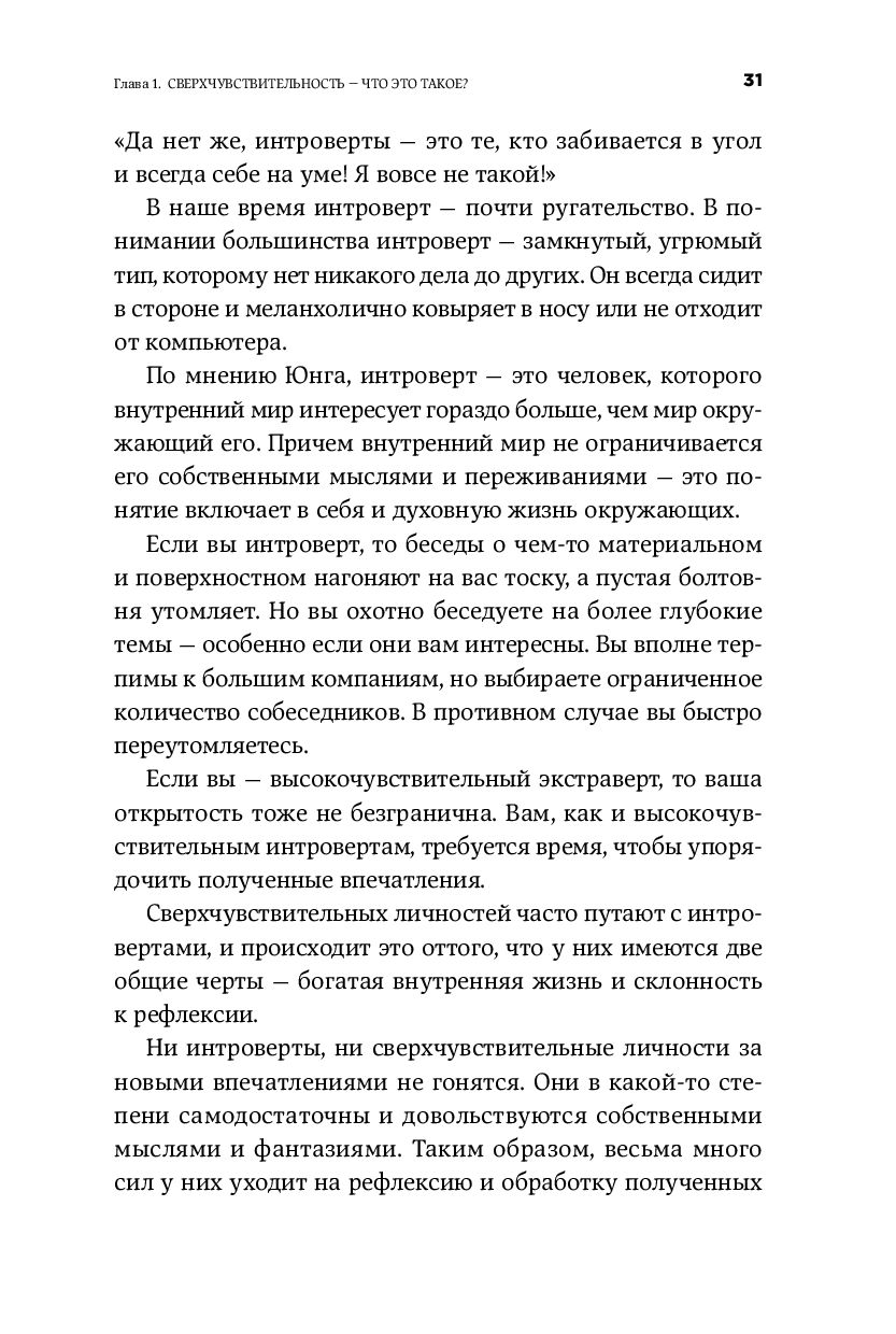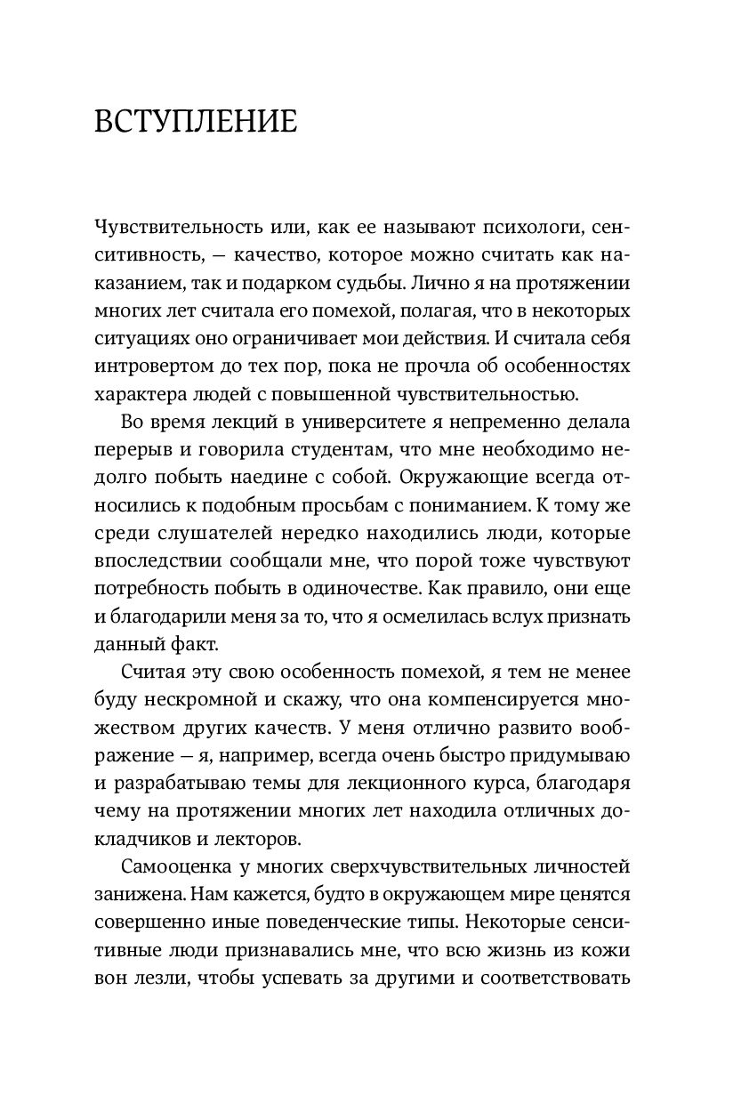 Илсе Санд, датский писатель и дипломированный психотерапевт, на собственном опыте постигшая все тяготы и радости жизни высокочувствительных людей, рассказывает, как новые интроверты, наконец, могут перестать пытаться перестроить себя и начать жить в свое удовольствие в гармонии с собой и своими чувствами.