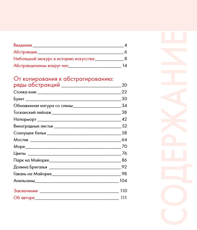 В этой книге свободный художник Вернер Майер приглашает вас в путешествие, ведущее от обычного срисовывания действительности к чистой абстракции. Основой его системы является изучение изображаемого сюжета с самых разных точек зрения и поиск в нём новых, иногда совсем неожиданных сторон. Автор проводит читателя по всем этапам создания абстрактных картин. Любителям искусства будет интересно понаблюдать за этим процессом, а художникам – самим пройти увлекательный путь от копирования к самому настоящему творчеству.