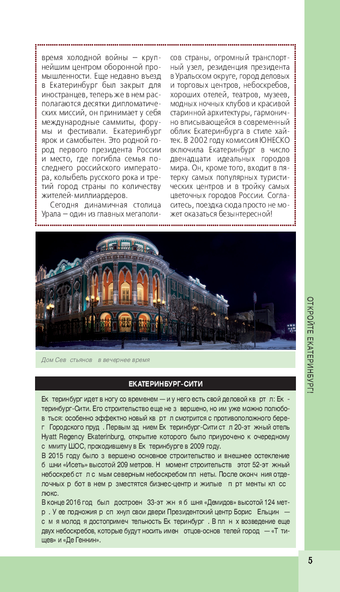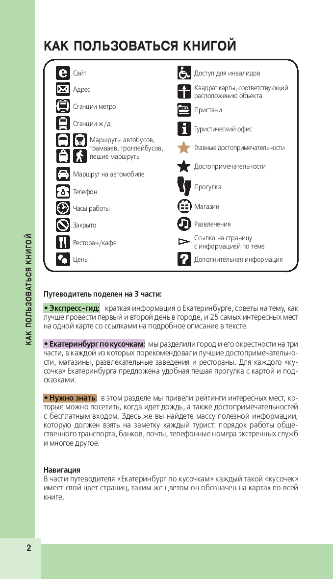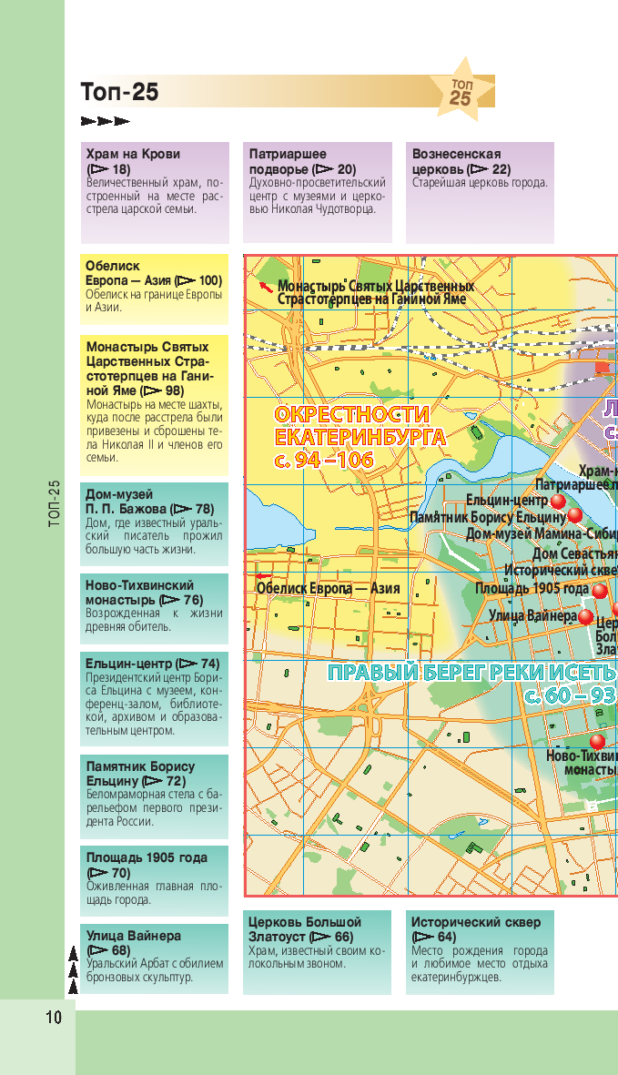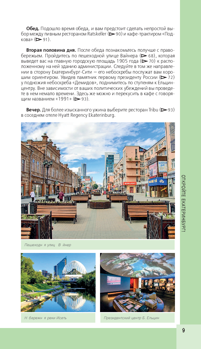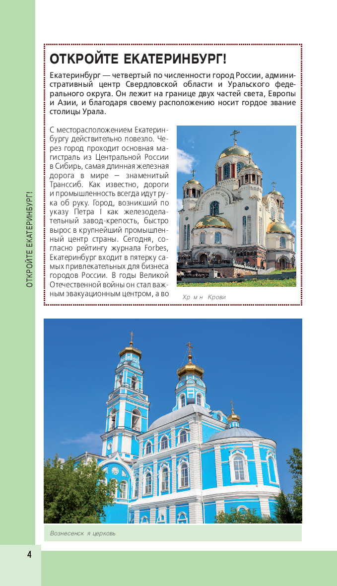 В путеводителе вы найдете описания самых интересных мест в столице Урала, а сориентироваться на местности помогут готовые маршруты и карты, расположенные на страницах гида.