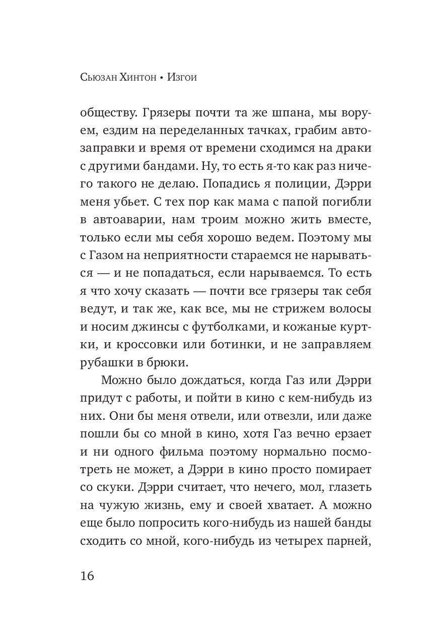 Маленький городок в Оклахоме, 60-е годы. В давнем конфликте противостоят друг другу банды подростков – грязеры и вобы. Первое правило грязеров – по одному не ходить, второе – не попадаться. И всегда стоять за друзей горой, что бы они ни сделали. 14-летний Понибой Кертис уверен: богатеньким деткам – вобам, золотой молодежи с западной части города – никогда не понять ребят из бедных кварталов с восточной стороны. И лишь одна страшная ночь, одна стычка с вобами все меняет. Сьюзан Элоиза Хинтон начала писать роман "Изгои" в 1965 году.