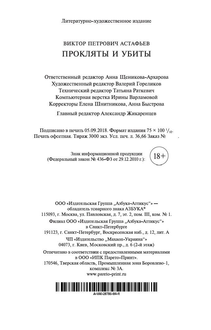 Война, увиденная глазами простого солдата – одного из сотен тысяч, в нечеловеческих условиях ежедневно сражающихся со смертью, – центральная тема в творчестве выдающегося русского писателя Виктора Астафьева. Роман "Прокляты и убиты" – итог многолетних размышлений и одно из самых драматичных, трагических и правдивых повествований о войне, как "преступлении против разума". Пронзительная откровенность писателя, его бескомпромиссное нежелание скрывать "неудобные" факты и приукрашивать суровую правду, предавая собственные воспоминания и память павших, завоевали произведениям Астафьева любовь миллионов читателей.