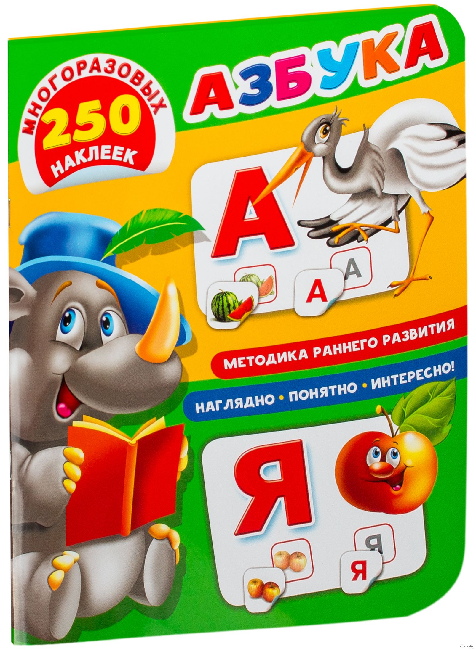 "Азбука" – развивающая книжка плюс 250 многоразовых стикеров.Задания, предложенные в этой книге, помогут не только выучить алфавит, но и развить речь, мелкую моторику, мышление, внимание и память ребёнка. Покажите маленькому ученику, как выполнять задания и подбирать нужные наклейки. Малыш удивится и обрадуется, ведь стикеры можно приклеивать на страницы книги бесконечное множество раз. Для дошкольного возраста.