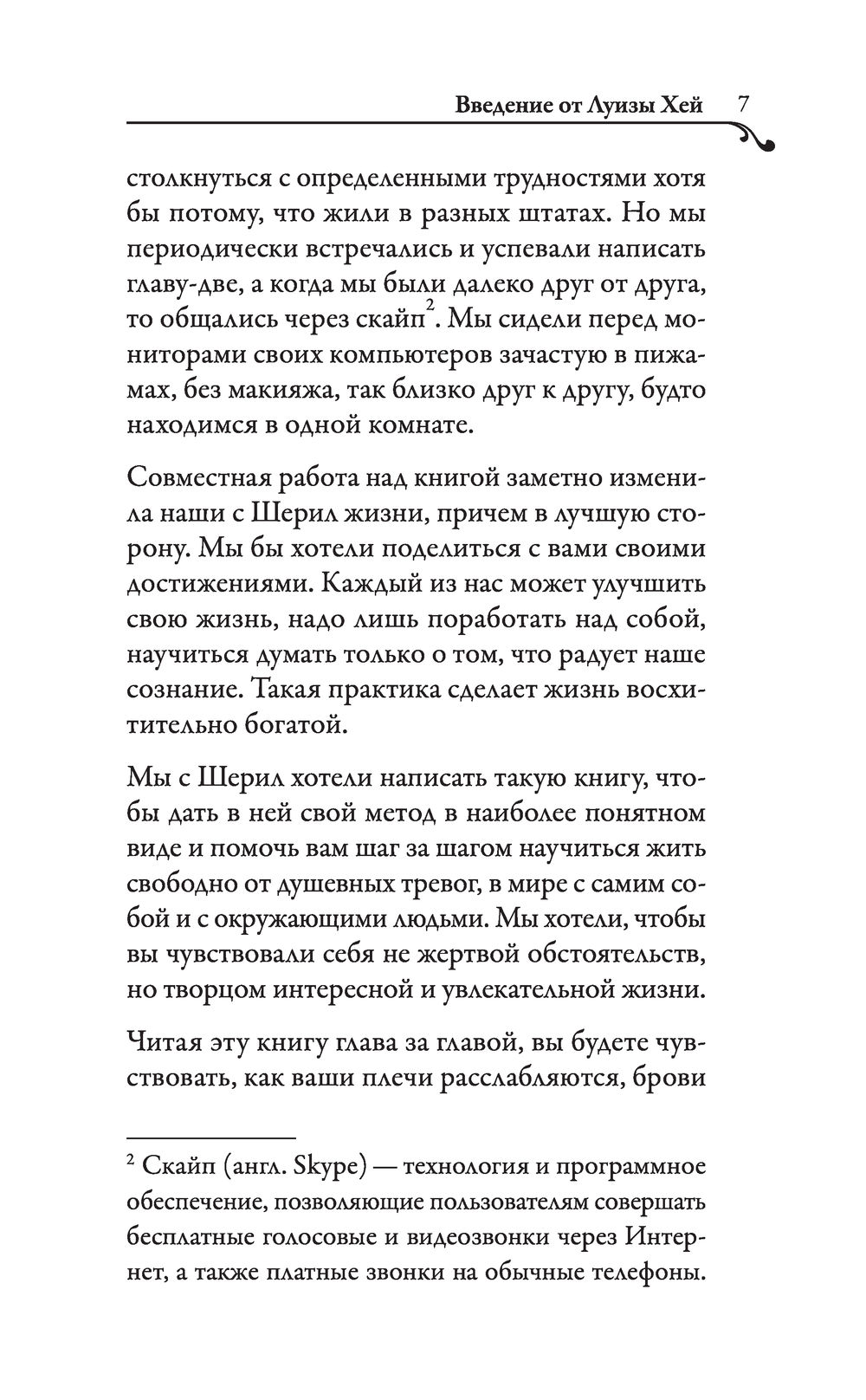 Впереди вас ждет только хорошее – в этом уверены сама Луиза, одна из основательниц движения самопомощи, автор бестселлеров в жанре популярной психологии, и ее соавтор, известная журналистка Шерил Ричардсон. Шаг за шагом следуя по страницам книги, вы научитесь с помощью аффирмаций управлять настроением и мыслями, воплощая свои мечты в жизнь. Полезные советы ярко иллюстрируются историями из жизни Луизы Хей, которые доказывают эффективность ее метода.