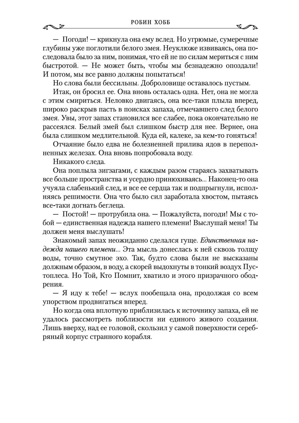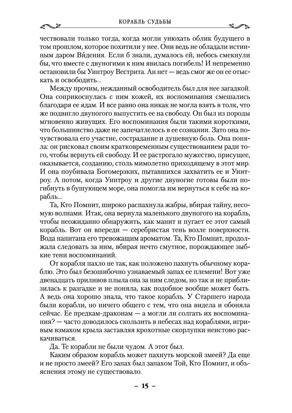 Повелители Трех Стихий, гордые и прекрасные драконы возвращаются в мир. Вырвалась на свободу из векового заточения Тинталья, расправила мерцающие синевой крылья – и обнаружила, что она единственная из своего племени, парящая в небесах. Ведь морским змеям, чтобы превратиться в драконов, нужно подняться вверх по течению реки, к берегам, покрытым песком памяти, а путь туда преграждает отмель. Нет больше Старших, которые издревле помогали драконам и оберегали их коконы. Значит, ничего не остается, кроме как обратиться за помощью к "мгновенно живущим" – людям. Трилогия о живых кораблях переведена мастером художественного слова писательницей М. Семёновой, автором "Волкодава" и "Валькирии".