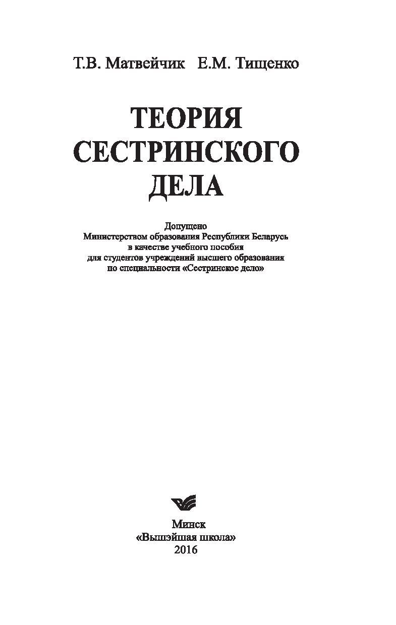 Освещены вопросы, касающиеся сестринского процесса, истории развития сестринского дела, соблюдения прав пациента, получения информированного добровольного согласия на медицинское вмешательство, врачебной тайны, сестринских ошибок. Имеется информация о современных моделях сестринского ухода за пациентом, месте сестринского дела в сохранении и укреплении здоровья людей на основе профилактической медицины.