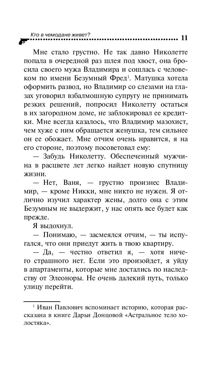 Николетта – матушка Ивана Подушкина – попросила сына приютить Генри фон Дюпре. Тот приехал в Россию, чтобы найти русскую невесту. И вот гость с огромным чемоданом поселился в офисе детективного агентства, где начинают происходить загадочные события: то раздаются таинственные звуки, то появляются предметы женского туалета, то неопознанный прибор нападает на собаку Демьянку... В это же время к Ивану Павловичу обращается Галина Михайловна Лапина. У нее похитили внучку и просят за нее странный выкуп в размере 160 тысяч рублей. Девочка явно инсценировала свое похищение – это первая мысль, которая приходит на ум. Погрузившись в расследование, Подушкин недоумевает: чего только в жизни не встретишь – даже династию профессиональных киллеров...