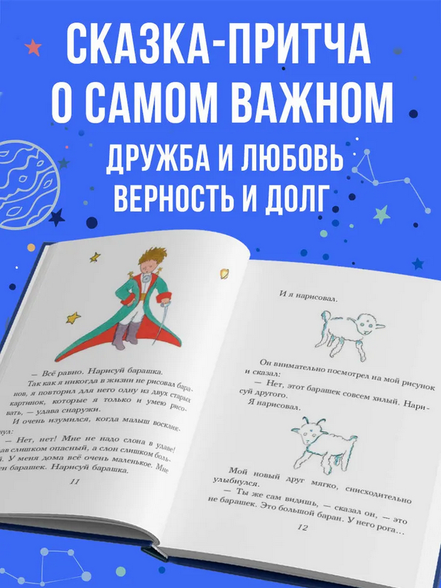 Самое знаменитое произведение Антуана де Сент-Экзюпери с авторскими рисунками. Мудрая и «человечная» сказка-притча, в которой просто и проникновенно говорится о самом важном: о дружбе и любви, о долге и верности, о красоте и нетерпимости к злу.