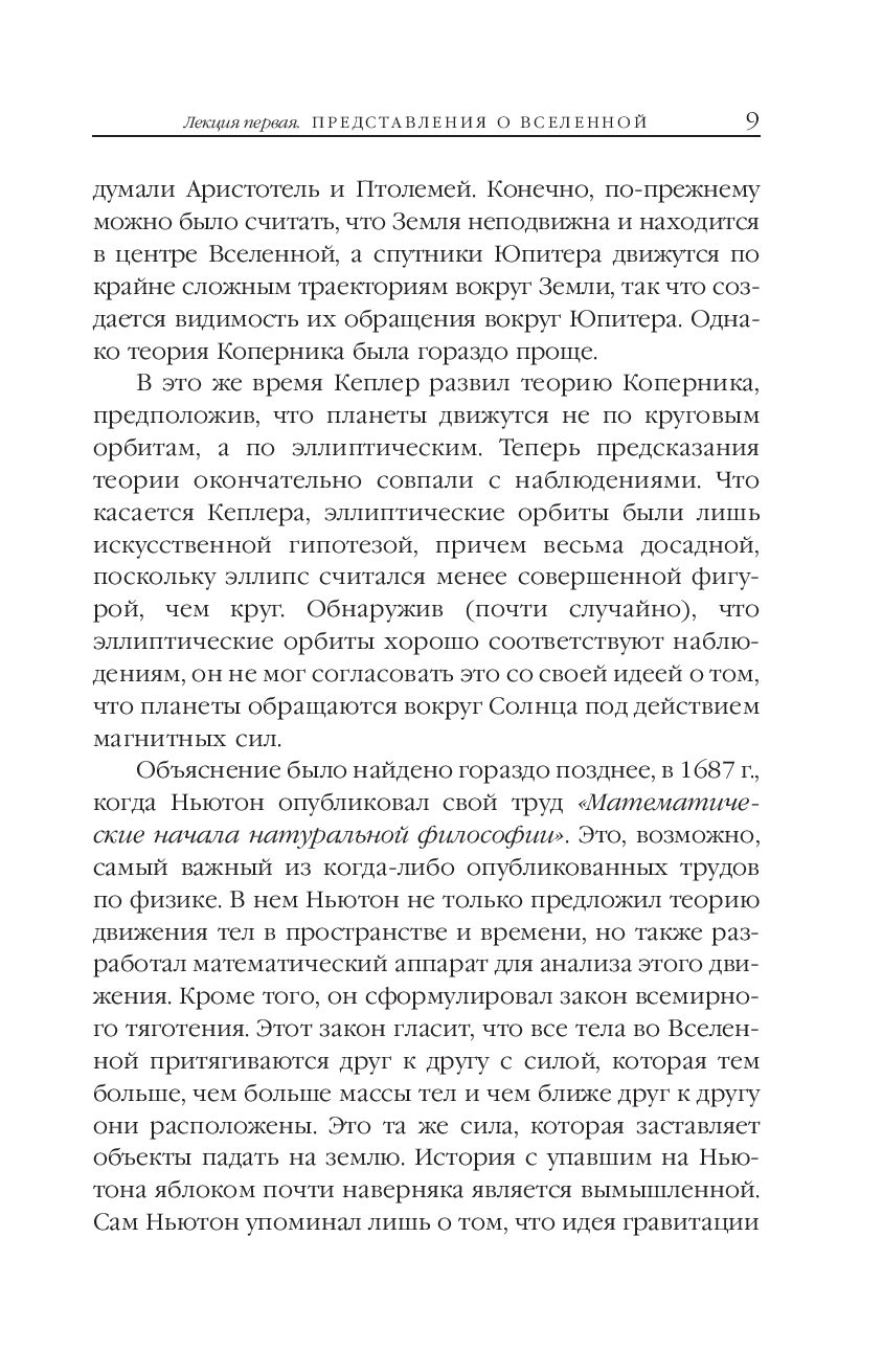 Книга объединяет семь лекций, охватывающих широкий диапазон тем: от Большого взрыва и чёрных дыр до теории струн. Автор описывает представления о Вселенной – от постулата о том, что Земля имеет форму шара, до теории о расширении Вселенной, основанной на недавних наблюдениях.