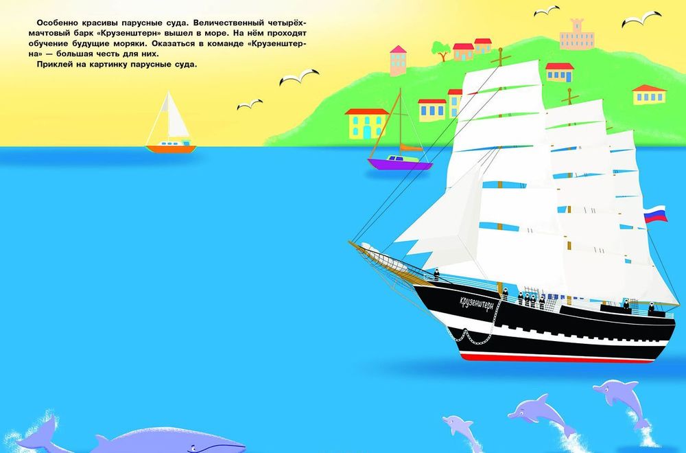 Мы приглашаем вашего малыша на увлекательную прогулку в порт. Здесь можно увидеть все виды водного транспорта – большие лайнеры и маленькие катера, грузовые баржи и парусники. Скорее открывайте книжку и приклеивайте наклейки!