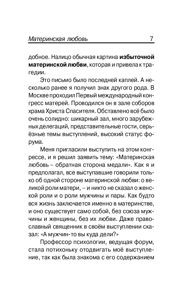 Вы узнаете о материнской любви, в том числе и о тех её проявлениях, которые приносят множество страданий и горя и родителям, и детям, и обществу в целом. Вам покажется это странным, но вы просто не смотрели на материнскую любовь "с другой стороны". Исследований такой глубины на эту тему ещё не было. Эта книга – для каждой семьи, потому что она показывает, в чём истинная причина семейных проблем и какую "работу над ошибками" нужно сделать, чтобы стать счастливым и успешным.