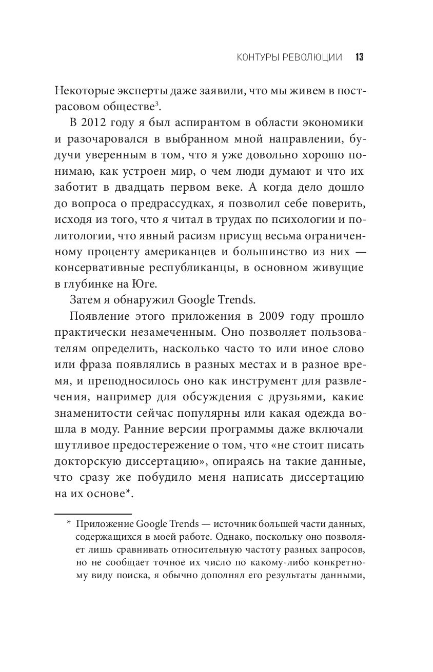 Автор книги, специалист Google по Data Science, провел исследование, опираясь на науку о больших данных (Big Data), а также данные, которые может предоставить исследователю Интернет. В результате он получил сенсационные данные, полностью переворачивающие современные представления об обществе, в котором мы живем.