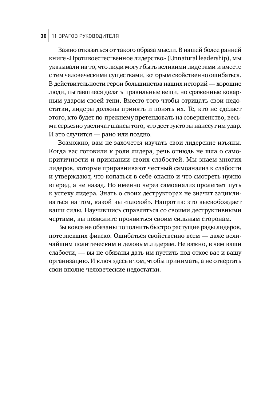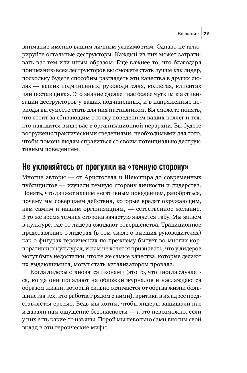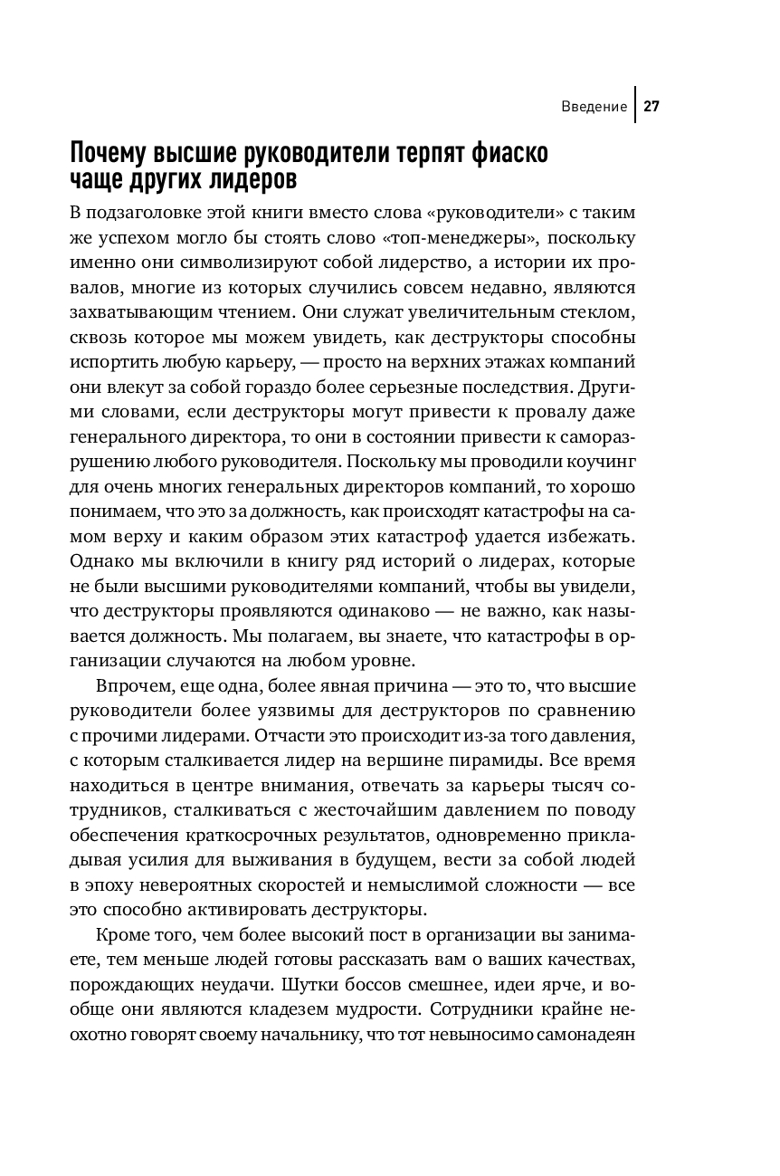 Она посвящена деструкторам – сильным сторонам руководителя, вышедшим из под контроля. Каждое из этих качеств в определенной степени является полезным, а иногда даже необходимым, чтобы добиться успеха. Однако в стрессовых ситуациях они могут неудержимо набирать силу, серьезно подрывая эффективность руководителя и порой приводя к катастрофическим последствиям.