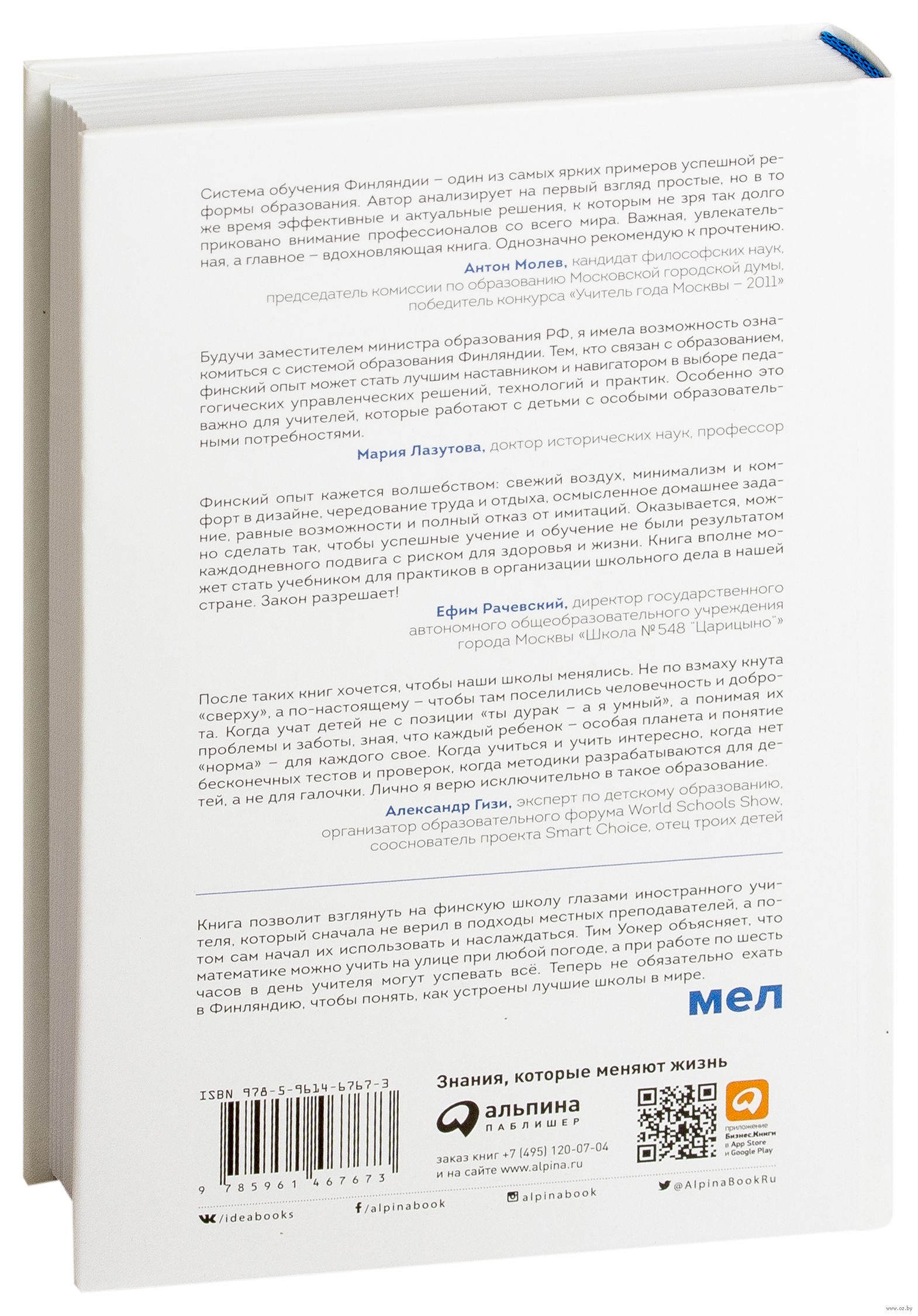 В своей книге Уокер рассказывает, как устроена финская система обучения, почему важно обсуждать с учениками их оценки, как предоставление школьникам выбора и совместное планирование помогут им стать более независимыми, почему обилие наглядных материалов на стенах приводит к снижению успеваемости и зачем учителю нужно играть с детьми на переменах. Он предлагает 33 стратегии, которые возможно применить и в наших, российских, школах.