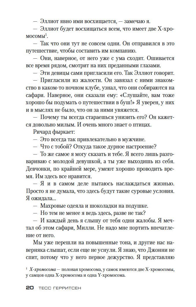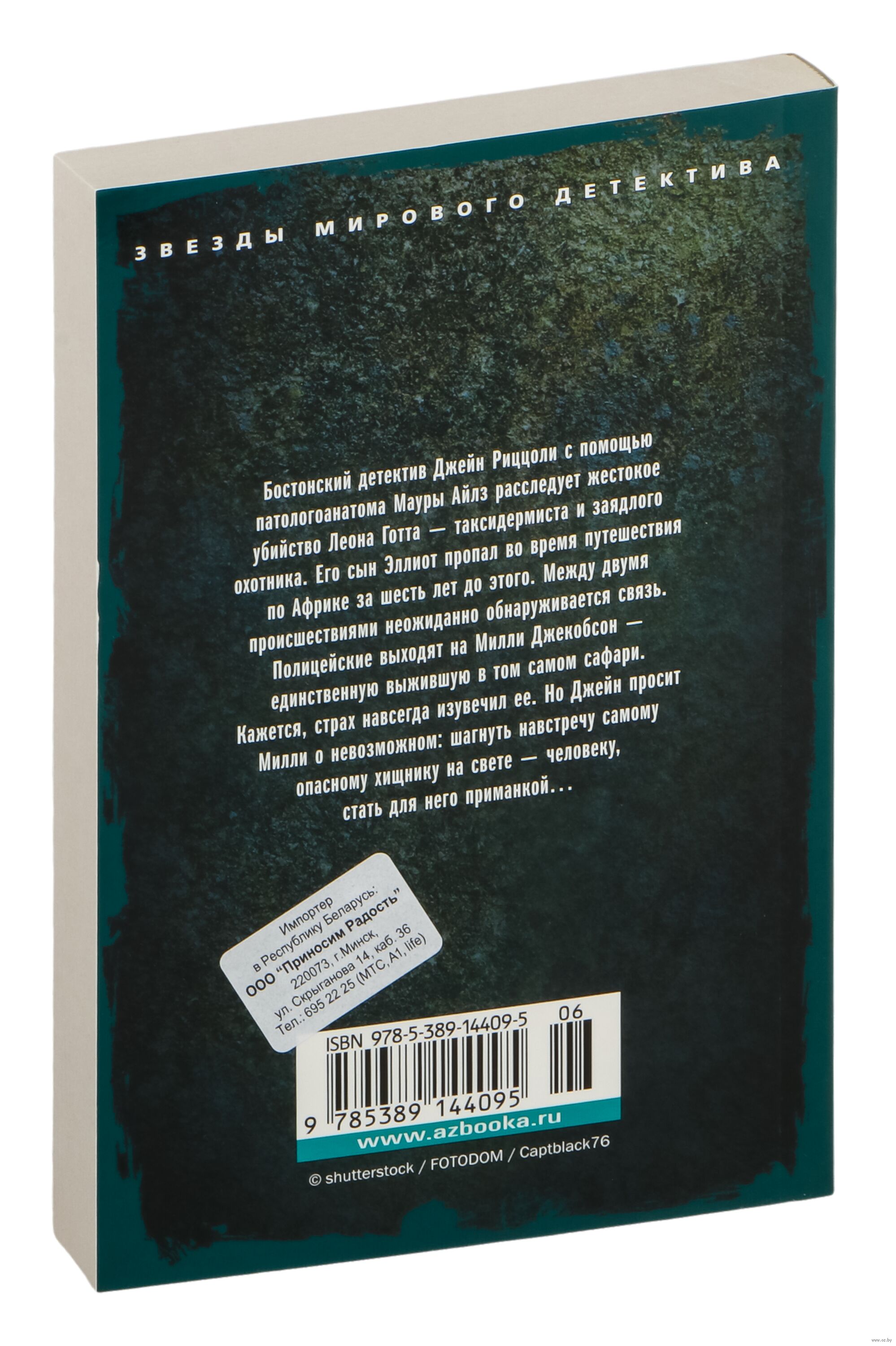 Бостонский детектив Джейн Риццоли с помощью патологоанатома Мауры Айлз расследует жестокое убийство Леона Готта – таксидермиста и заядлого охотника. Его сын Эллиот пропал во время путешествия по Африке за шесть лет до этого. Между двумя происшествиями неожиданно обнаруживается связь. Полицейские выходят на Милли Джекобсон – единственную выжившую в том самом сафари. Кажется, страх навсегда изувечил ее. Но Джейн просит Милли о невозможном: шагнуть навстречу самому опасному хищнику на свете – человеку, стать для него приманкой...