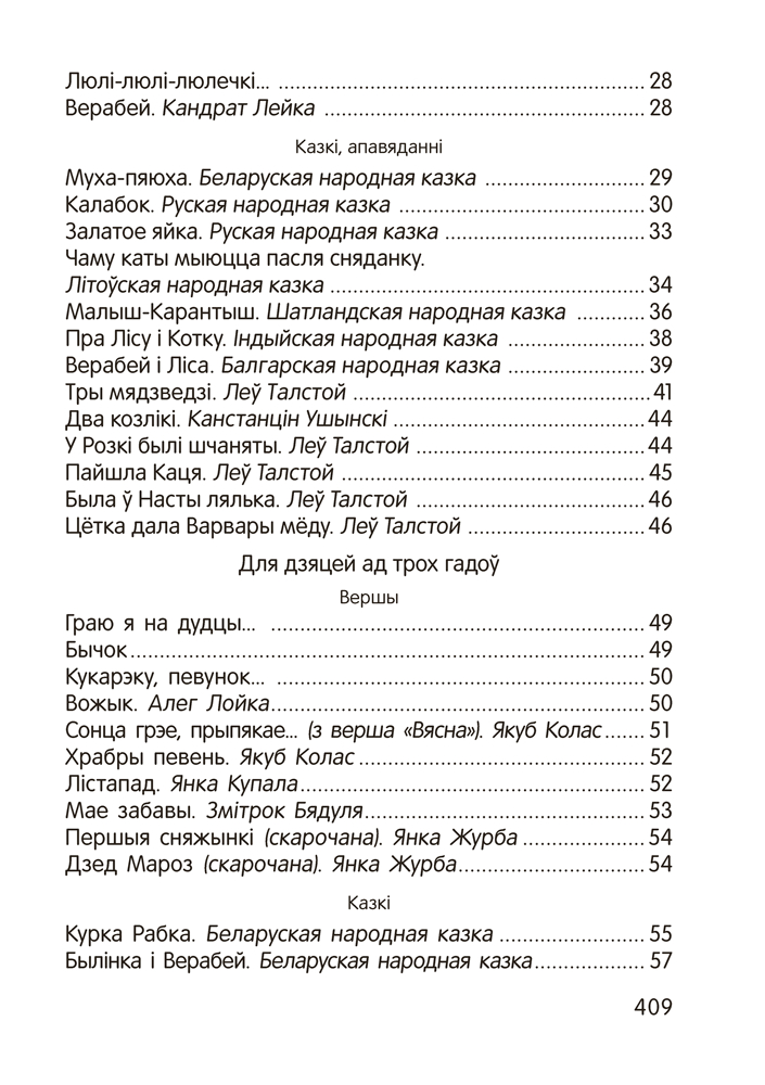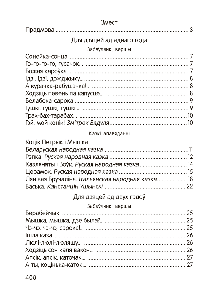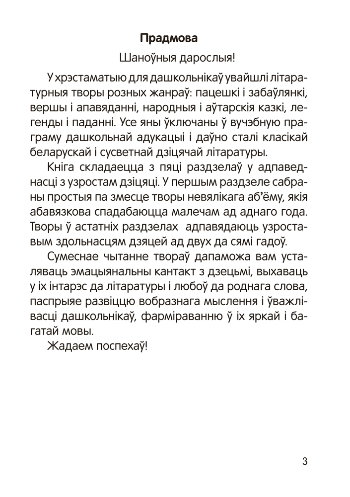 Кніга змяшчае творы мастацкай літаратуры і фальклору, якія ўваходзяць у вучэбную праграму дашкольнай адукацыі (адукацыйная вобласць "Мастацтва", напрамак "Мастацкая літаратура").