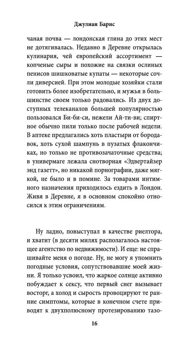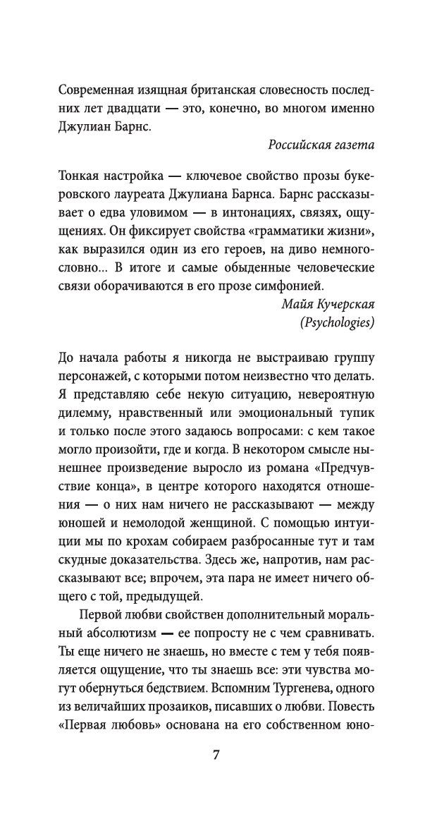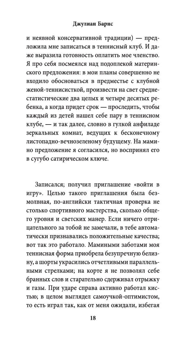 "У большинства из нас есть наготове только одна история, – пишет Барнс. – Событий происходит бесчисленное множество, о них можно сложить сколько угодно историй. Но существенна одна-единственная; в конечном счете только ее и стоит рассказывать".