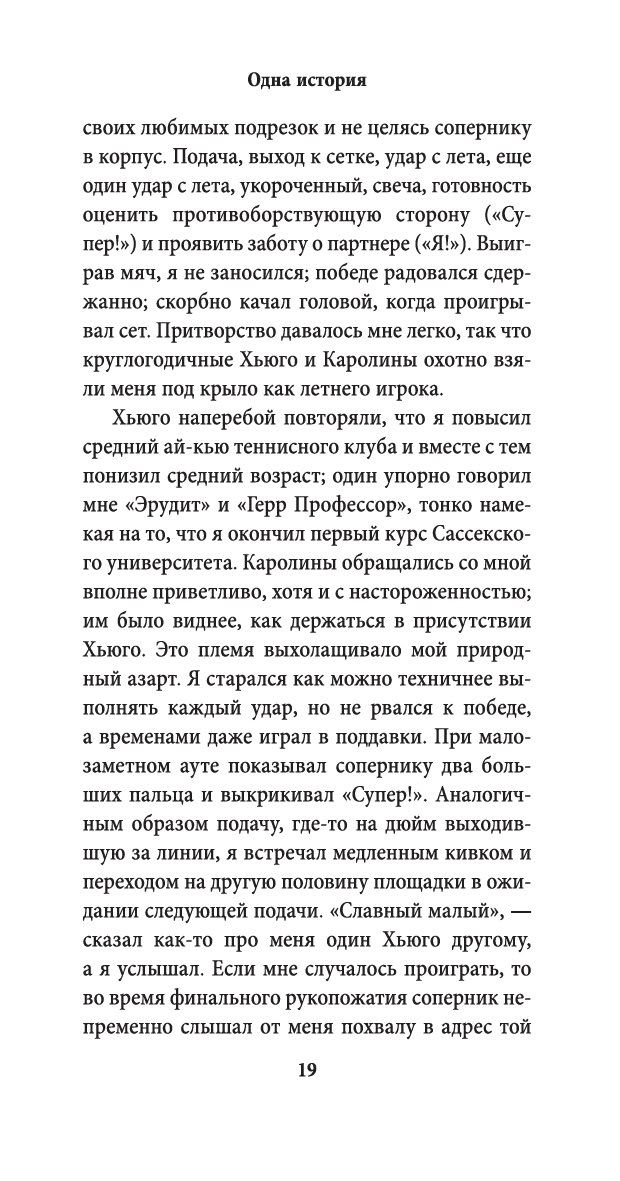 Итак, познакомьтесь с Полом; ему девятнадцать лет. В теннисном клубе в тихом лондонском пригороде он встречает миссис Сьюзен Маклауд; ей сорок восемь. С этого и начинается их единственная история – ведь "влюбленным свойственно считать, будто их история не укладывается ни в какие рамки и рубрики"...