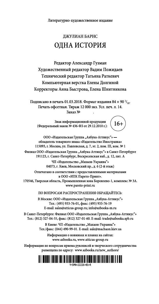 | Изготовитель | ООО "Издательство "Иностранка". 109017, РФ, г. Москва, ул. Пятницкая, 41 |