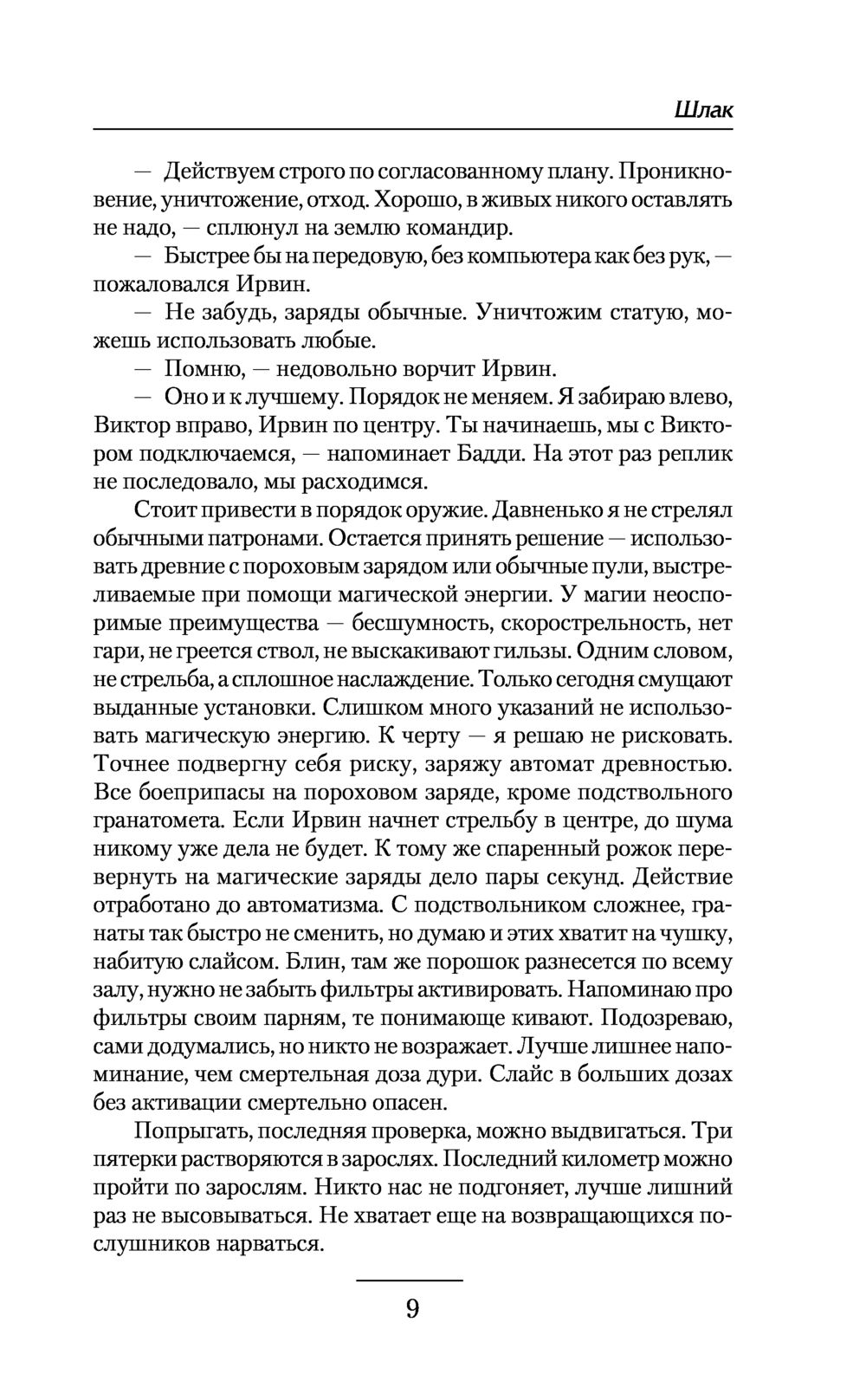 Ошибка правосудия отправляет героя в мир, окрещенный не иначе как Шлак. Пути обратно на Землю нет и не будет. Доступ к магии потерян, как и шанс его вернуть. В мире, населенном отбросами общества, отсутствие магии станет не самой актуальной проблемой. Выжить, остаться собой, не уподобиться окружающим – вот первоочередные задачи, стоящие перед Виктором. Чужой мир полон сюрпризов. Что будет дальше, решит судьба или ее тень.