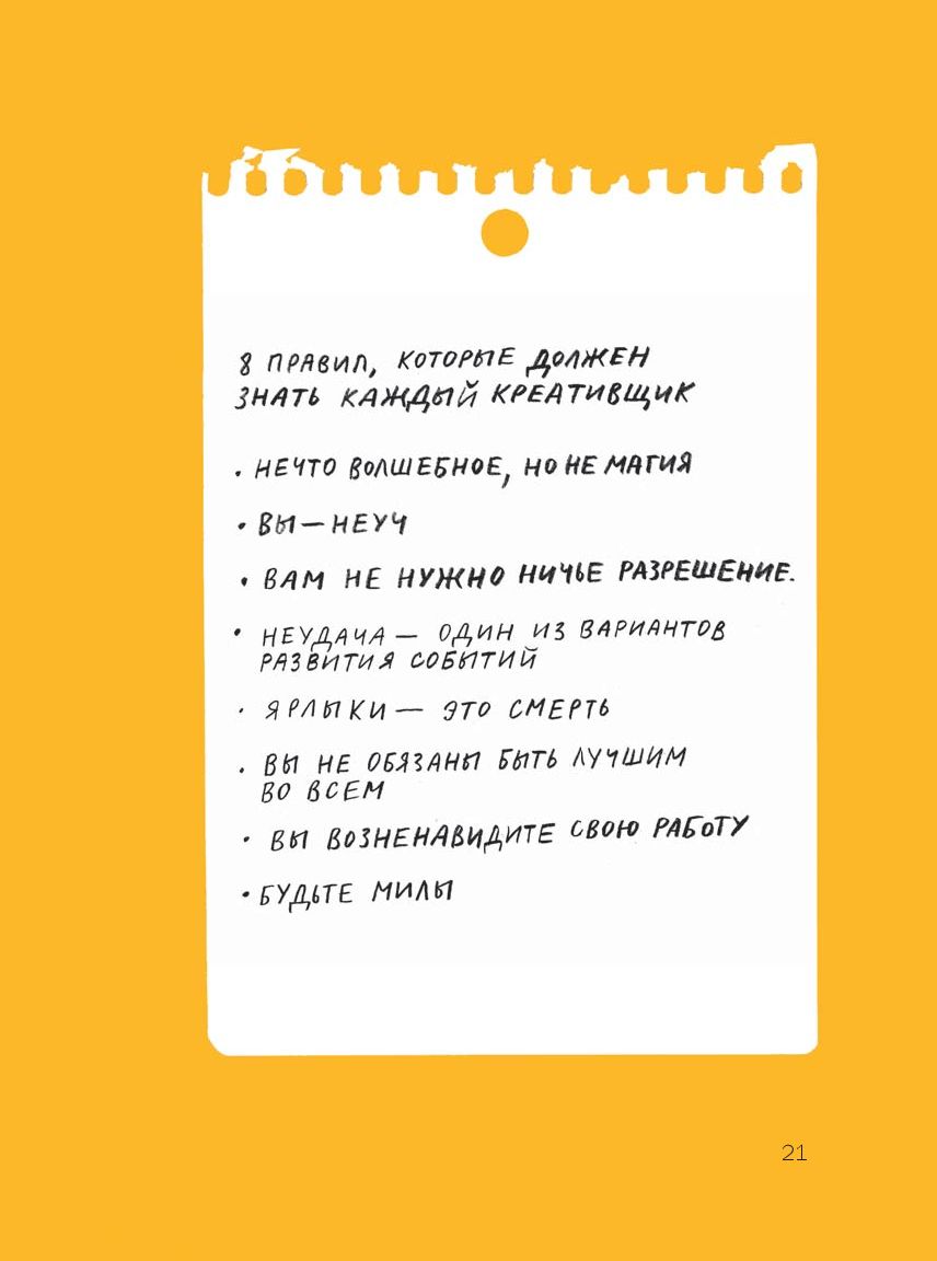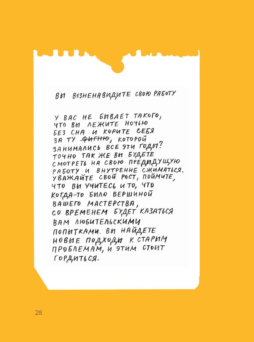 Ироничная и дерзкая, но в то же время полная сочувствия и поддержки, эта обманчиво простая книга станет источником вдохновения и лучшим советником для писателей, художников, дизайнеров, предпринимателей и всех, кто не боится быть творческим, даже когда проще сдаться и погрузиться в рутину обычной жизни.