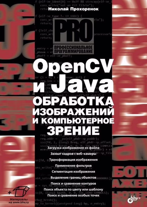Книга знакомит с современными технологиями компьютерного зрения, позволяющими машинам, роботам, веб-камерам и другим устройствам распознавать изображения. Приведено описание библиотеки компьютерного зрения OpenCV применительно к языку программирования Java. Объясняется, как загружать и сохранять изображения в различных форматах, захватывать кадры с веб-камеры в режиме реального времени, выполнять обработку, трансформацию и сегментацию изображения, применять к изображению фильтры. На практических примерах рассмотрены алгоритмы компьютерного зрения, предназначенные для обнаружения, классификации и отслеживания объектов, выделения границ и контуров объектов, поиска объектов по шаблону, особым точкам, цвету или обученному классификатору.