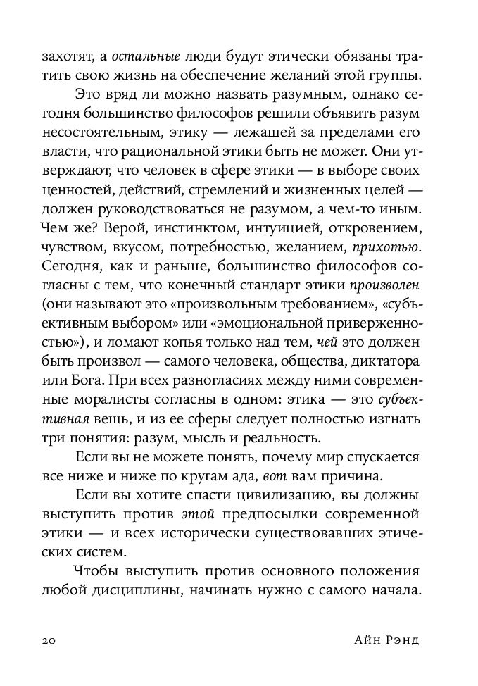 Автор убедительно доказывает, что только в рамках системы, которая ставит во главу угла права личности и разум, люди могут свободно развиваться и обретать счастье, не оказываясь порабощенными диктаторами, государством и другими людьми.