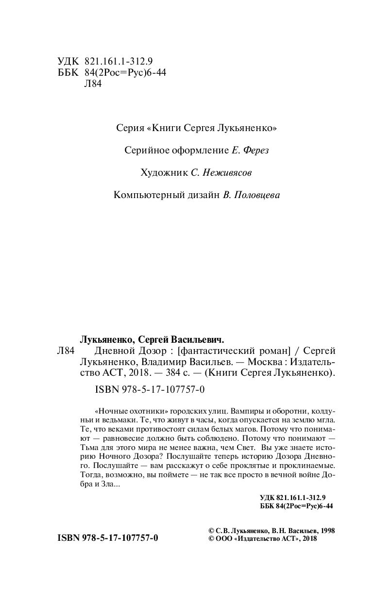 "Ночные охотники" городских улиц. Вампиры и оборотни, колдуньи и ведьмаки. Те, что живут в часы, когда опускается на землю мгла. Те, что веками противостоят силам белых магов. Потому что понимают – равновесие должно быть соблюдено. Потому что понимают – Тьма для этого мира не менее важна, чем Свет. Вы уже знаете историю Ночного дозора? Послушайте теперь историю дозора Дневного. Послушайте – вам расскажут о себе проклятые и проклинаемые.
