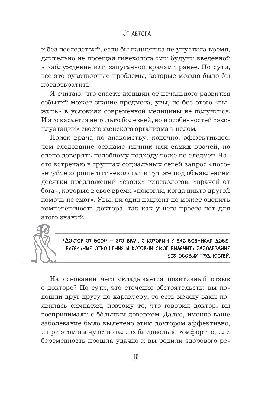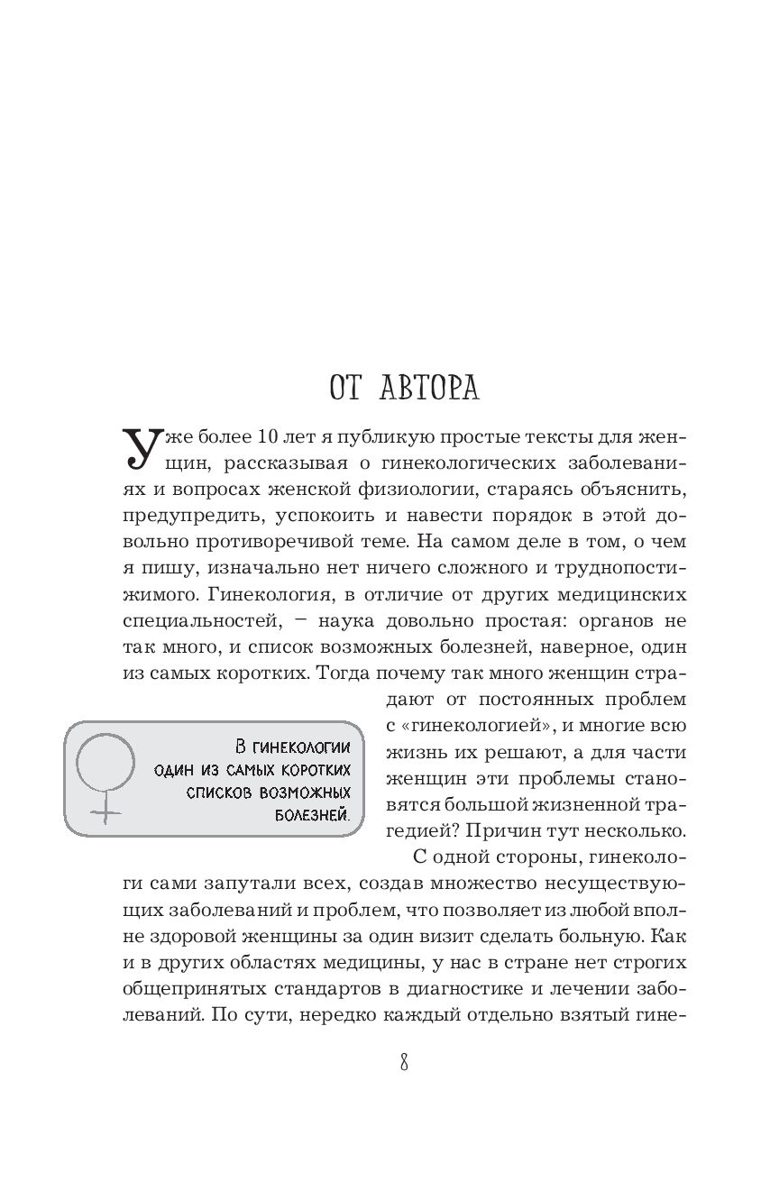 Отличная книга, написанная простым и понятным языком, подойдет как подростку, так и уже взрослой женщине. В ней есть ответы на многие вопросы, связанные с женским здоровьем и удовольствием. Мне особенно понравилась часть книги про гинекологов и их компетентность: как понять, какие анализы сдавать? как понять, назначенное доктором "лечение" реальная необходимость или просто способ современных клиник заработать больше на доверчивых пациентах? и др. В книге есть ссылки на новейшие статьи в области гинекологии, что внушает доверие к автору. Последнюю главу про секс я бы обязательно рекомендовала к прочтению и мужчинам :)