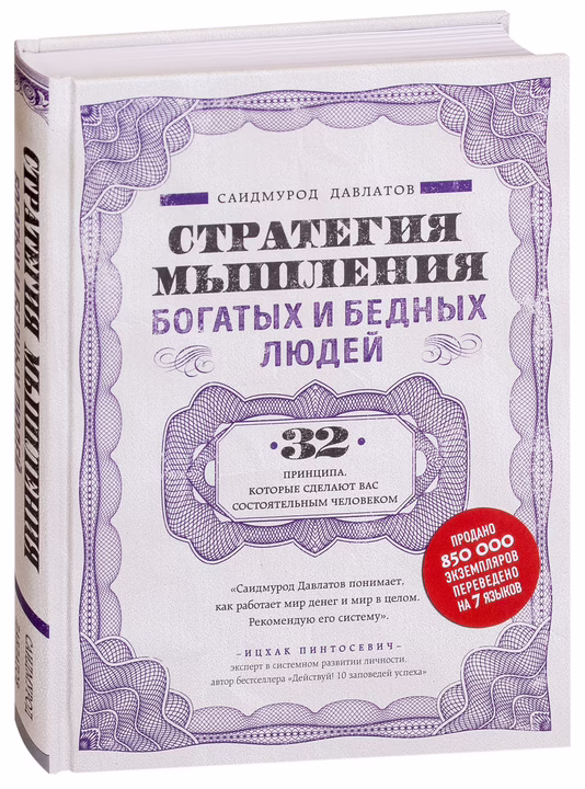 "Если я такой умный, почему не богатый?" Кто не задавался этим вопросом? Ответ на него очевиден: все дело в образе мысли. Саидмурод Давлатов более двадцати лет анализировал мышление богатых и бедных людей. Он вывел 32 отличия, которые не дают большинству из нас выйти на новый уровень благосостояния. Эта книга – настоящий мастер-класс по изменению своего финансового мышления. Она поможет избавиться от ограничивающих установок, научит видеть новые источники дохода и правильно относиться к накоплению денег.
