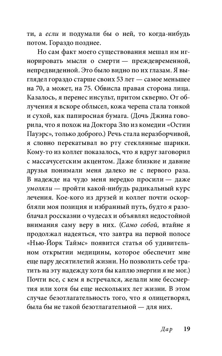 Шесть дней спустя Юджин начал новую жизнь, которую многие годы откладывал на будущее. Он спланировал ее так, как и подобает топ-менеджеру его ранга: провел аудит прошлого, пересмотрел приоритеты, выполнил полный реинжиниринг жизненных бизнес-процессов и разработал подробный бизнес-план с учетом новых горизонтов планирования с целью сделать последние дни лучшими в жизни.