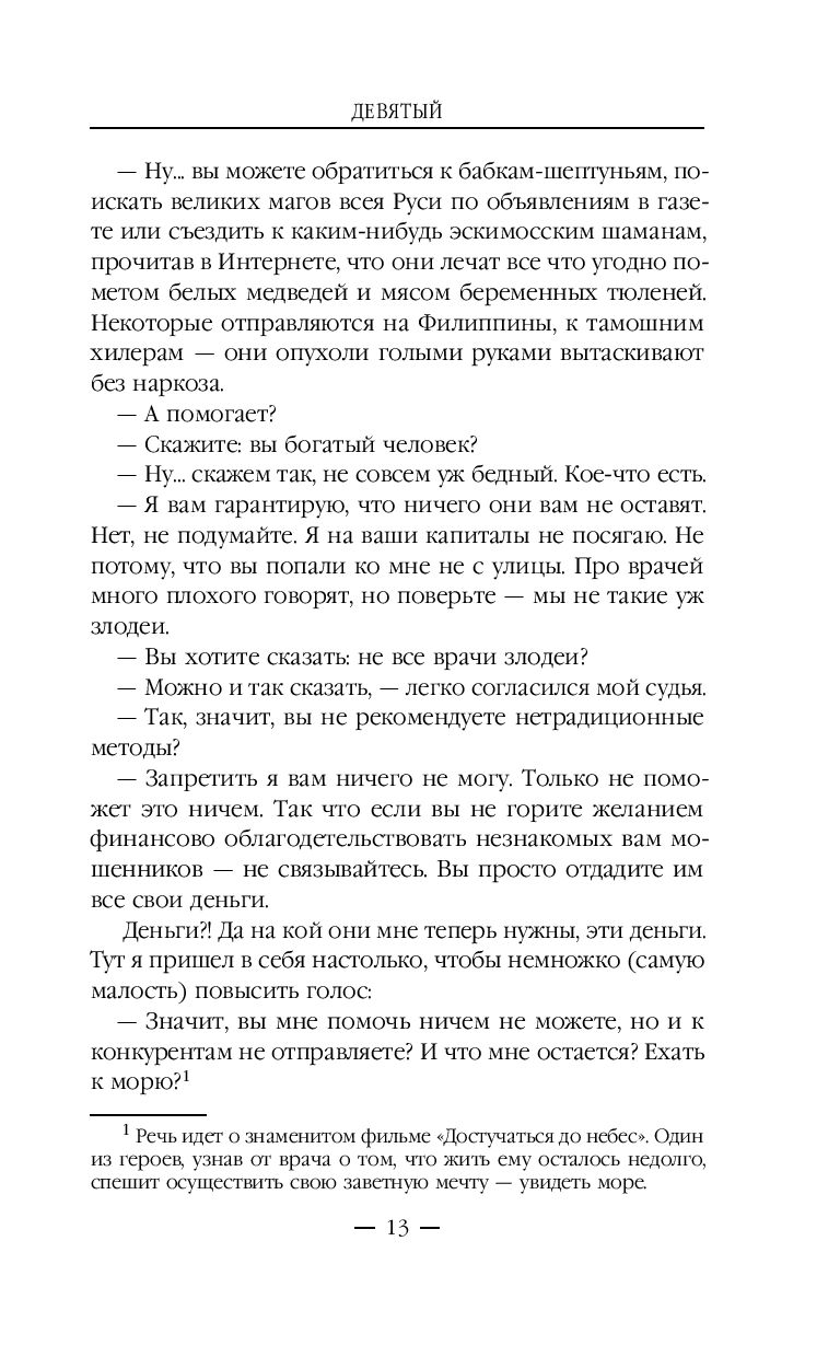 Смертный приговор, вынесенный Данилу медициной, не оставил ни малейшей надежды на спасение. Что делать? Провести остаток жизни в пьянстве и бессмысленных развлечениях, или принять предложение незнакомца проникнуть в параллельный мир, где обрести новое тело и шанс на выживание? Выбор труден, особенно, если учесть, что восемь предшественников Данила погибли лютой смерти. Ну что ж, а вдруг Девятому повезет?..