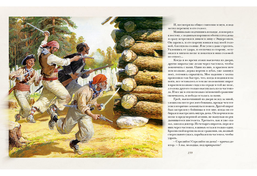 Затерянный в океане остров, таинственные сокровища, кровожадные пираты... Крутой бейдевинд, левый галс, бизань-мачта, шканцы и шпигаты... Приключенческая литература всегда привлекала художника Игоря Ильинского. Он иллюстрировал Майн Рида и Анатолия Рыбакова, Фенимора Купера и братьев Стругацких. А уж история юного Джима Хокинса вряд ли могла оставить равнодушным художника – знатока исторических эпох, эрудита, мастера достоверных деталей. И герои "Острова Сокровищ" надели напудренные парики и треуголки, обули кожаные башмаки с пряжками, вооружились мушкетами и кремневыми пистолетами, саблями и морскими кортиками... и отправились на поиски сокровищ капитана Флинта.