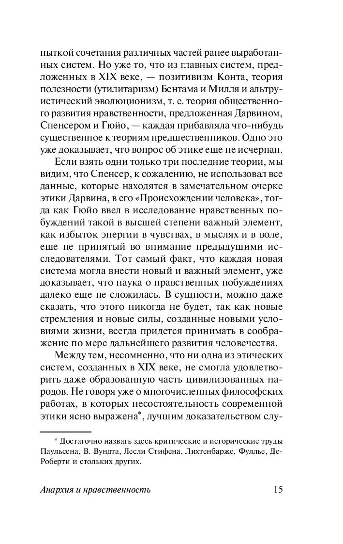 Сборник включает избранные труды по этике, в которых автор рассматривает проблемы происхождения и исторического развития нравственности, дает оценки конкретных событий, личностей, социальных явлений. Гуманистическая ценность его идей заключается в обращении к сознанию человека и этическим ценностям как к естественной духовной силе, способной объединять поколения. Особое место занимают размышления об анархии, которые Кропоткин применяет не только в отношении политики, но и в качестве методологического ключа к пониманию сути общественного бытия.