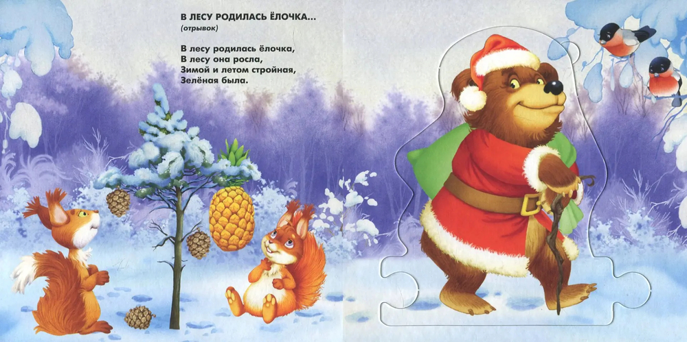 С героями самых известных классических стихов про ёлочку и дедушку Мороза можно поиграть. Пазлы из плотного мелованного картона удобно доставать из книжки и собирать в дорожку. Так будет еще проще запомнить стихи и интересно поиграть, составляя свои истории из пазлов. Ребенок всегда сам сможет вернуть пазл на правильное место в книге – ведь под пазлом изображение повторяется.