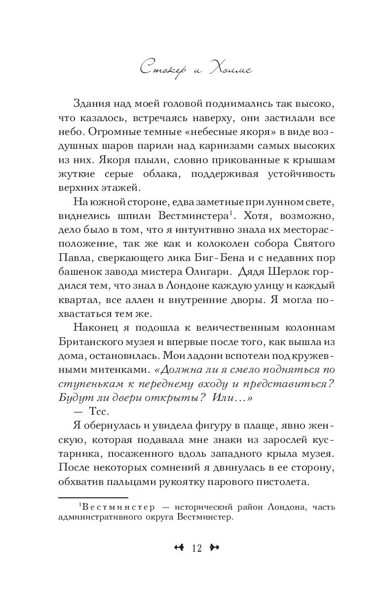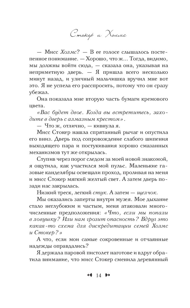 Такую загадку могут разрешить лишь Мина Холмс, племянница знаменитого сыщика, активно практикующая дедуктивный метод дяди, и Эвалайн Стокер, охотница на вампиров, сестра начинающего писателя Брэма Стокера. Кто стоит за этими преступлениями? Под руководством Айрин Адлер девушкам предстоит поступить на тайную службу Короне и угодить в самое опасное приключение в своей жизни.