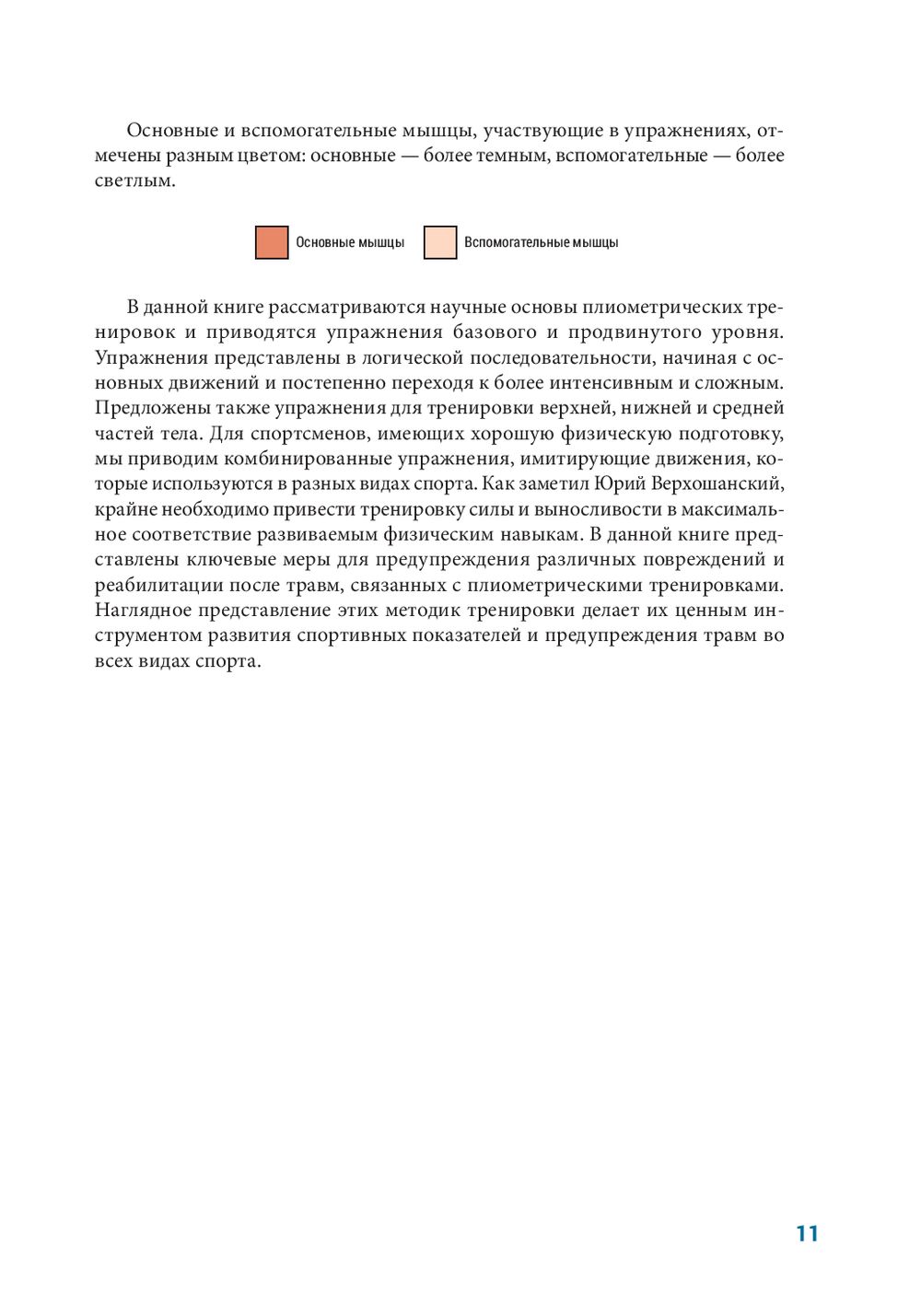 Профессиональные спортсмены и тренеры используют плиометрические упражнения для развития силы, двигательных навыков, скорости, координации, равновесия и в целом для повышения спортивных показателей. С этим справочником по плиометрике вы тоже сможете улучшить свою физическую форму! Авторы книги, профессиональные тренеры, делятся с вами секретами, благодаря которым их подопечные достигают больших успехов в спорте. Они представляют вашему вниманию более 90 плиометрических упражнений, каждое из которых снабжено подробными иллюстрациями и анатомическим описанием, чтобы показать, какие мышцы работают во время его выполнения, что позволит вам наглядно видеть, как это упражнение способствует улучшению ваших спортивных показателей.