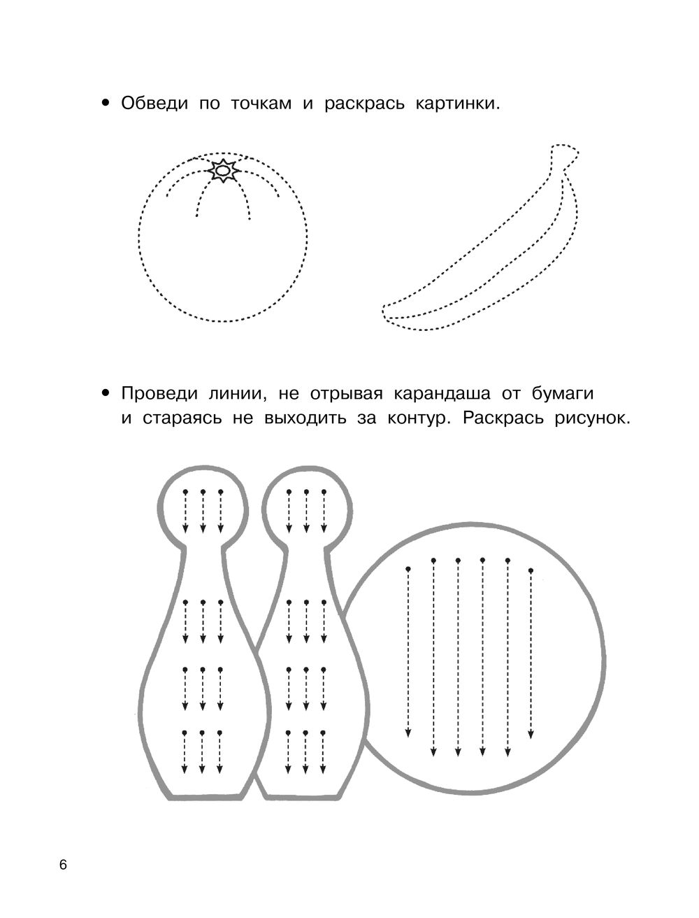 На страницах этой книги – веселые зверята, забавные человечки, ягоды, овощи, фрукты, игрушки и машинки. Предложите малышу проводить фигурные линии, обводить картинки по точкам и раскрашивать цветными карандашами, не выходя за контур.