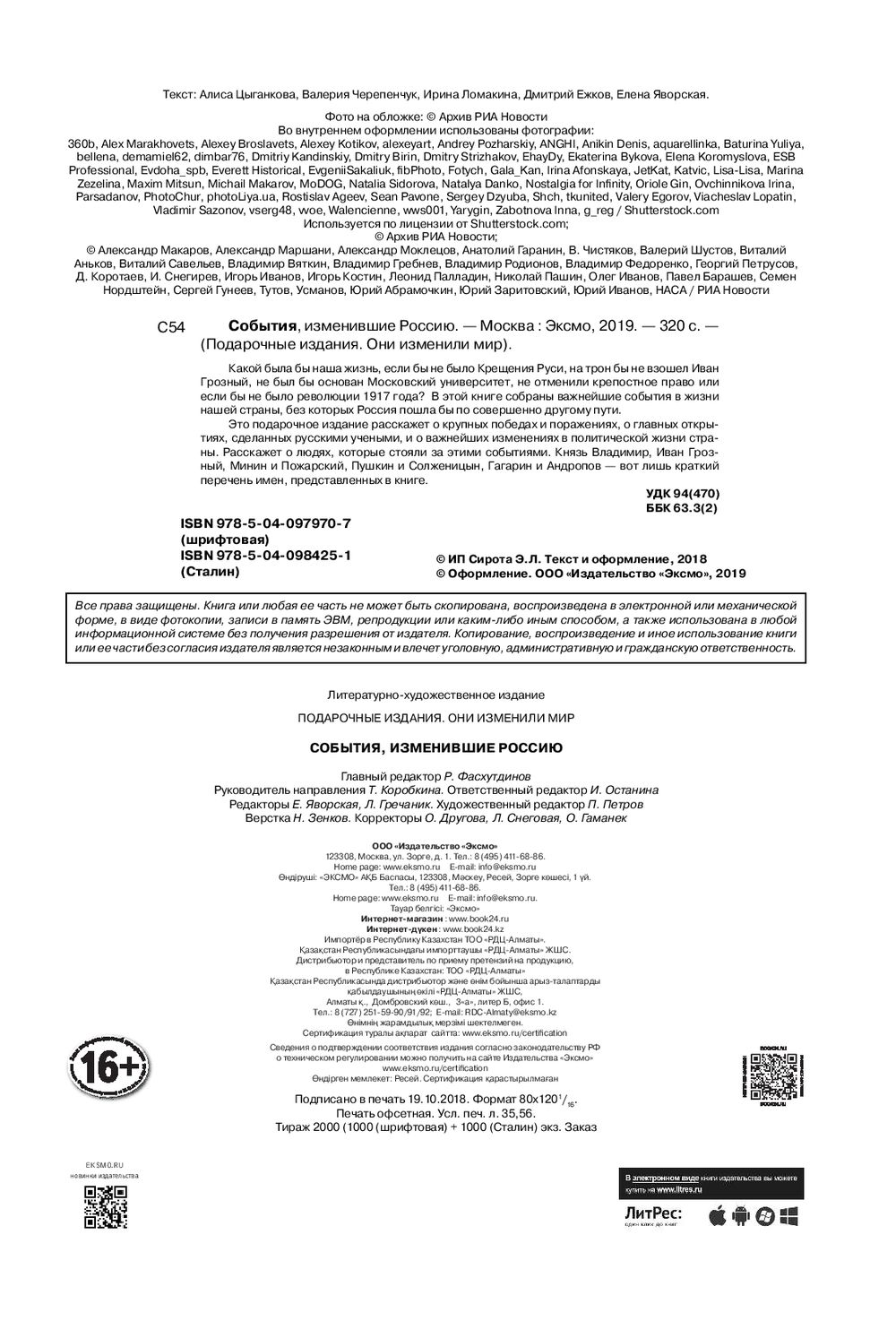 В этой книге собраны важнейшие события в жизни нашей страны, без которых Россия пошла бы по совершенно другому пути. Это подарочное издание расскажет о крупных победах и поражениях, о главных открытиях, сделанных русскими учеными, и о важнейших изменениях в политической жизни страны.