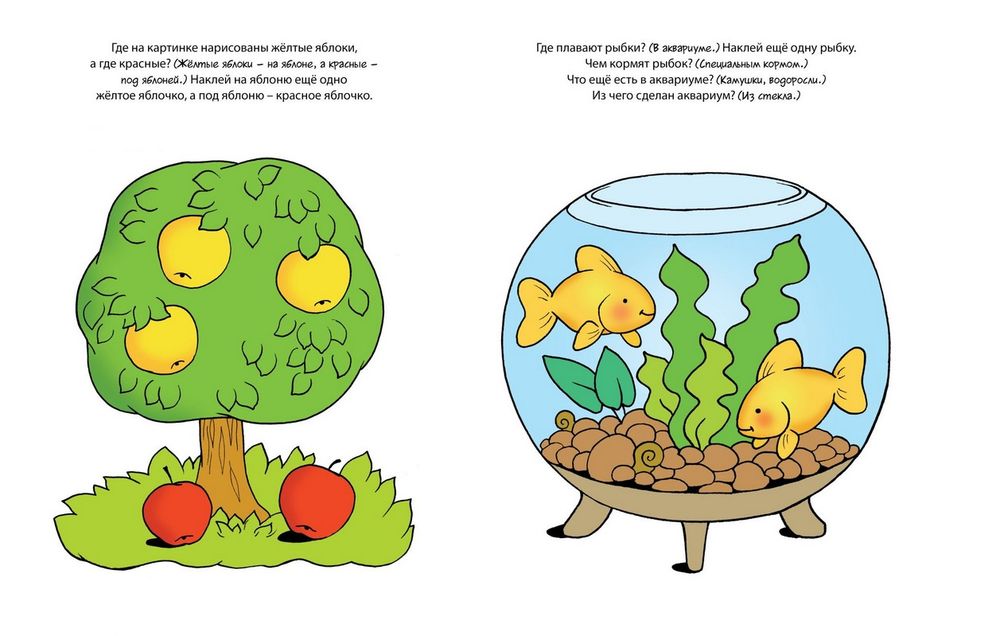 Найдите вместе с ребенком нужную наклейку и помогите ему приклеить ее на страничку.
