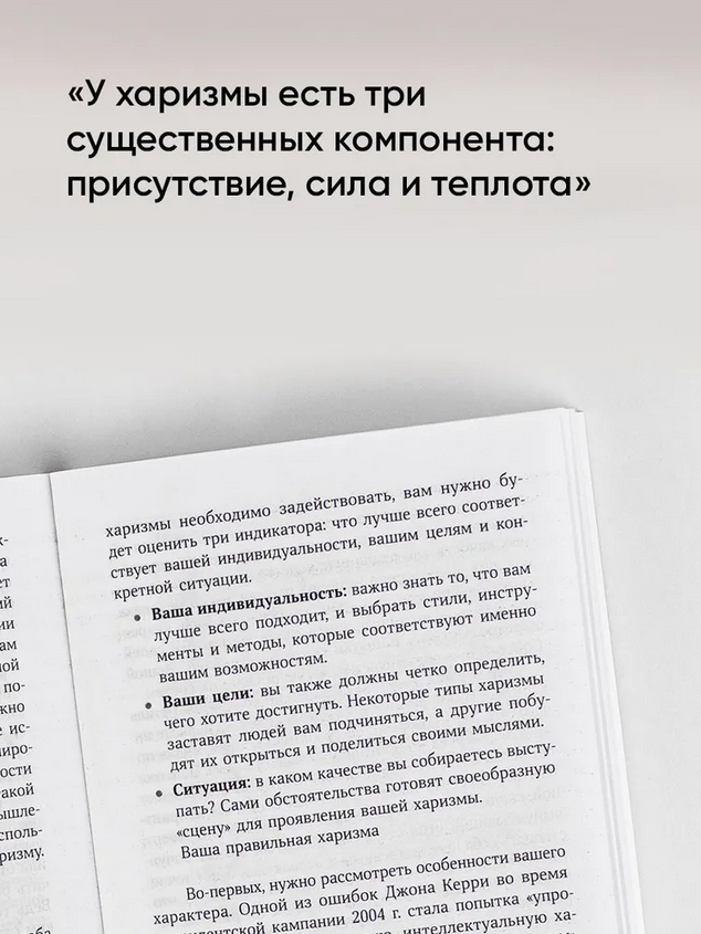 Книга развенчивает один из самых закостенелых мифов современности о том, что харизма – дар богов. Многие считают, что это врожденное качество, и воспринимают харизматичную личность чуть ли не как сверхчеловека. Но это совсем не так. Сравните записи ранних выступлений Стива Джобса с его последними обращениями к публике и вы увидите, насколько харизматичнее он стал. Оливия Фокс Кабейн доказывает, что харизма – это навык, который вполне по силам освоить каждому.