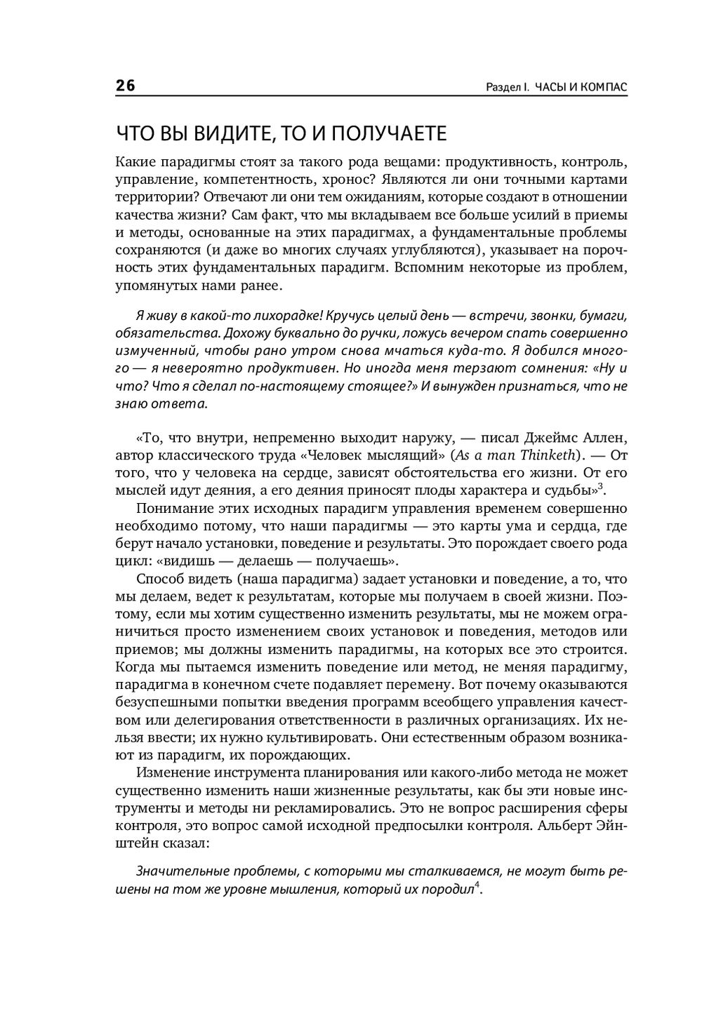Книга отрицает традиционный подход к организации времени: работать как можно больше, быстрее и изобретательнее. Вместо очередных часов она предлагает компас, потому что то, куда вы держите путь, гораздо важнее, чем то, насколько быстро вы идете.