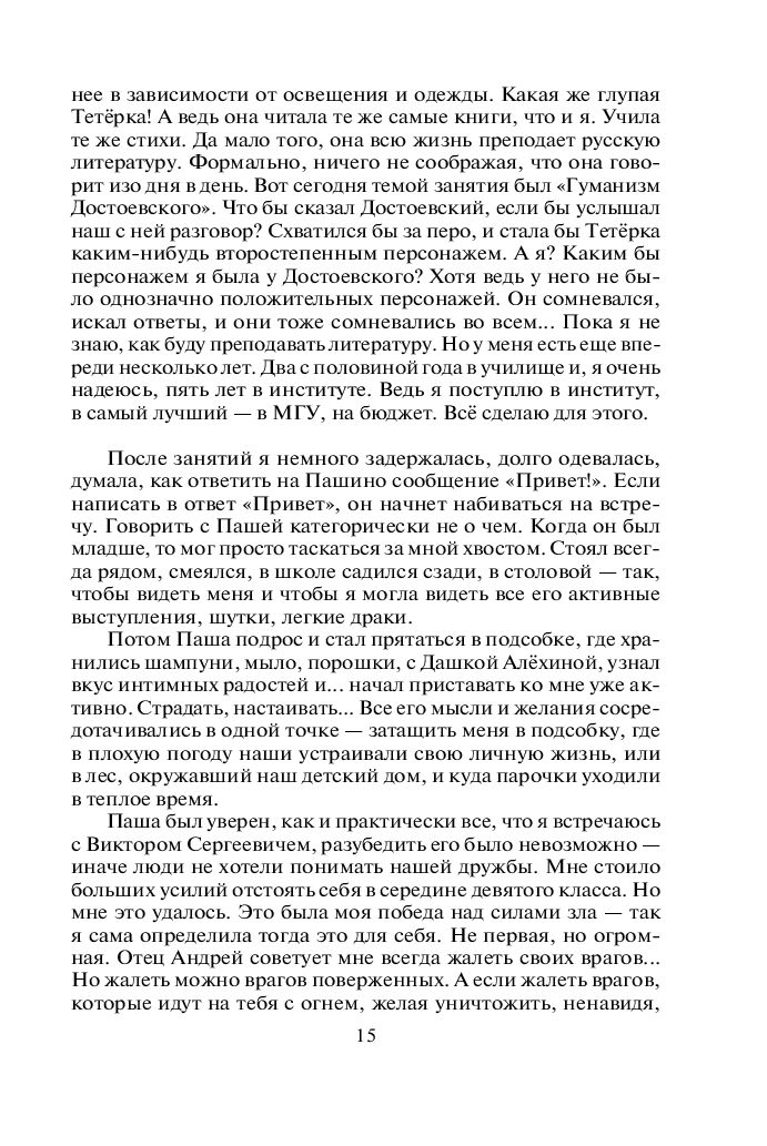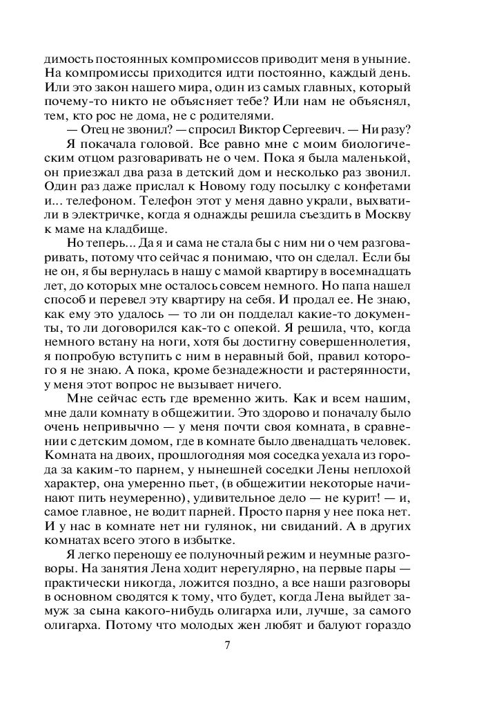 Любовь и нелюбовь, одиночество и обман, соблазны, искушения, вопросы, на которые нет ответа, ответы, которые невозможно принять, – этим наполнена жизнь семнадцатилетней девушки, выросшей в детдоме и пытающейся отстоять себя и свое право быть счастливой.
