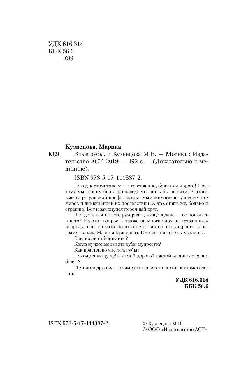 Мне, как стоматологу, было очень интересно прочесть данную книгу. Реально освещены все проблемы, с которыми сталкиваются стоматолог и пациент. Все разложено по полочкам, именно так, каким должен быть взгляд пациента на стоматолога! Прочла на одном дыхании и с автором согласна полностью!