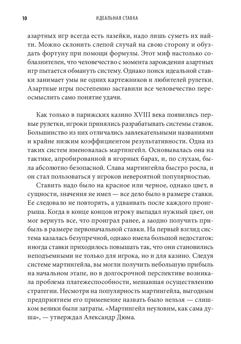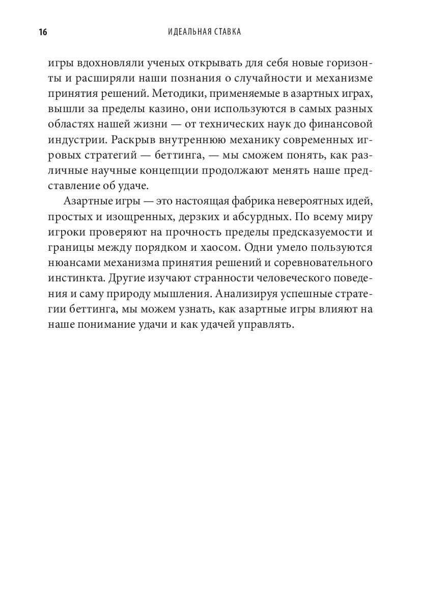 "Азартные игры – настоящая фабрика невероятных идей, поражающих своей оригинальностью и дерзостью" – убежден математик и журналист Адам Кучарски, рассказывающий в "Идеальной ставке" увлекательную историю обмена идеями между наукой и индустрией азартных игр.